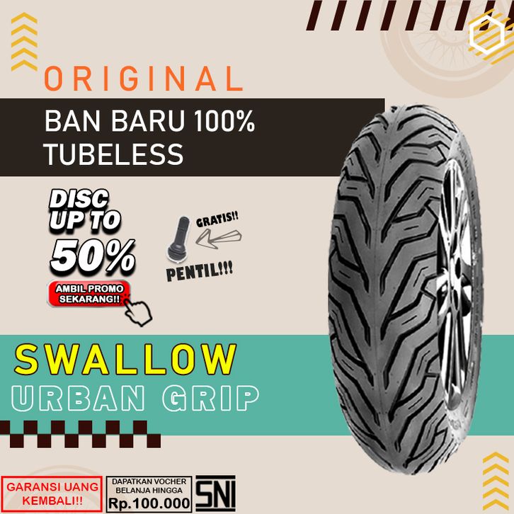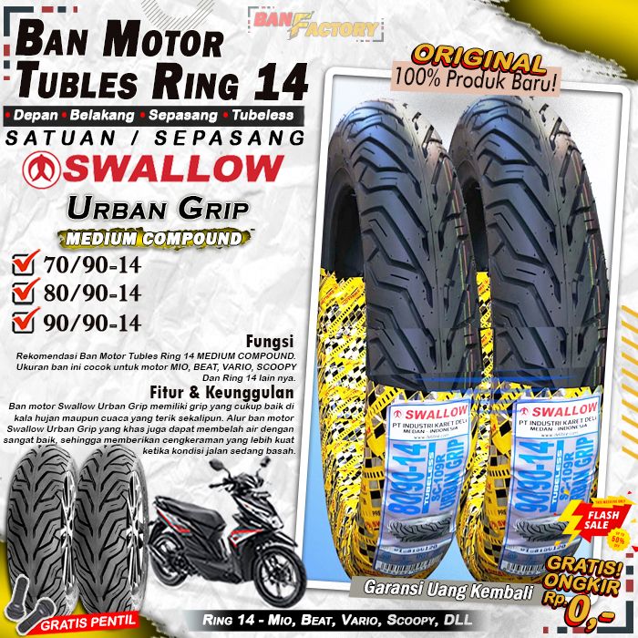Ban Motor Matic Tubeless Swallow Urban Grip Ring 14 Ban Motor Beat Vario Scoopy Tubles Depan Belakang Sepasang Ring 14