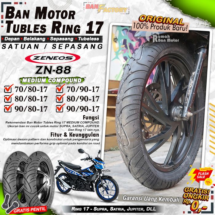Ban Motor Tubeless Zeneos Zn88 Ring 17 Ban Motor Vixion Ninja R15 Satria Tubles Depan Belakang Sepasang Ring 17