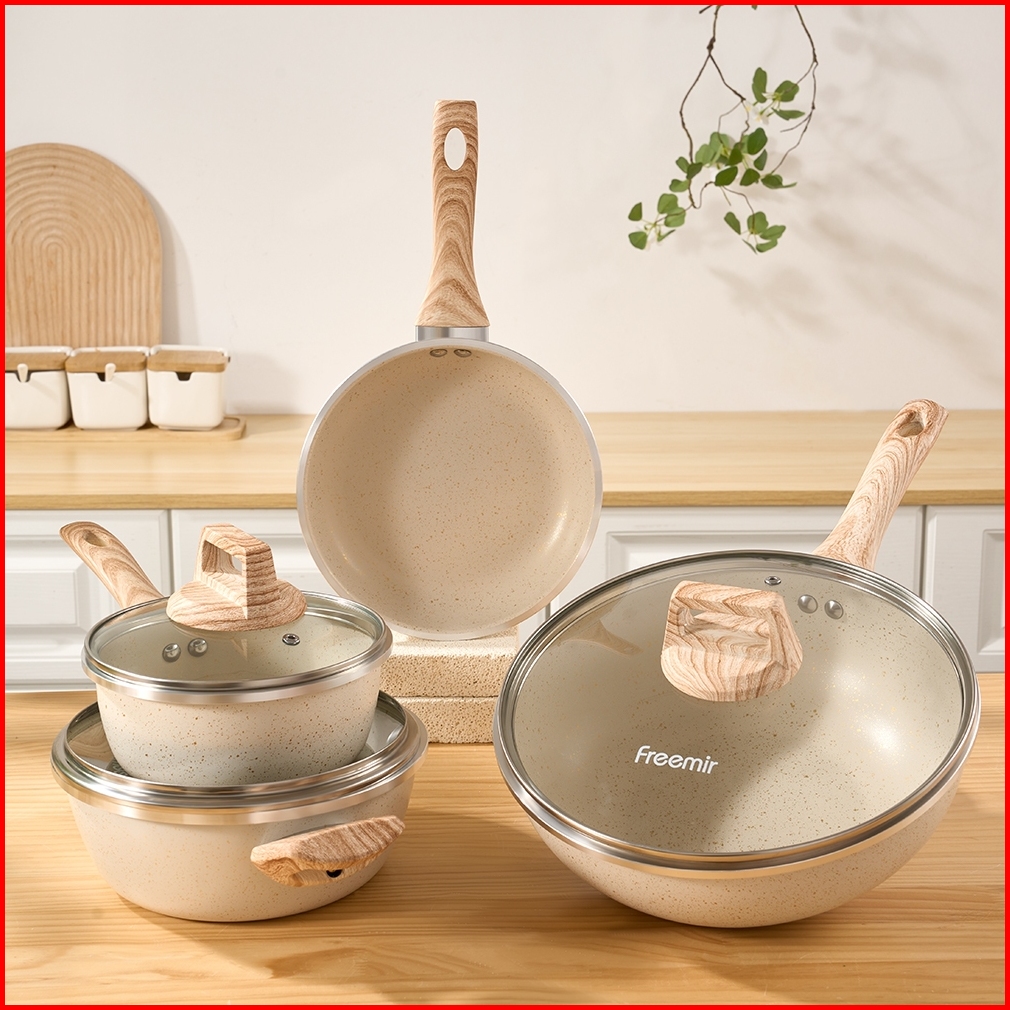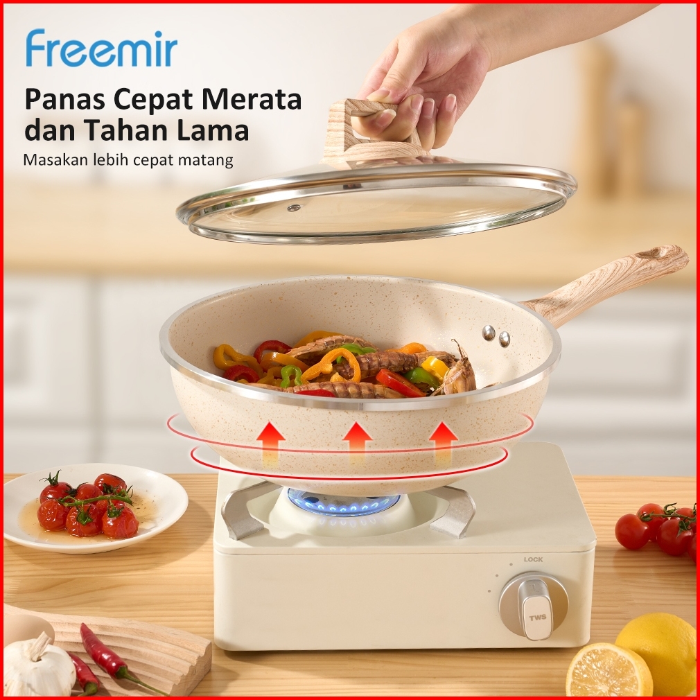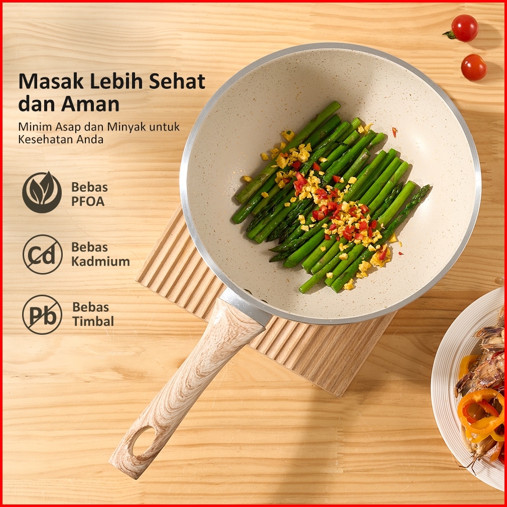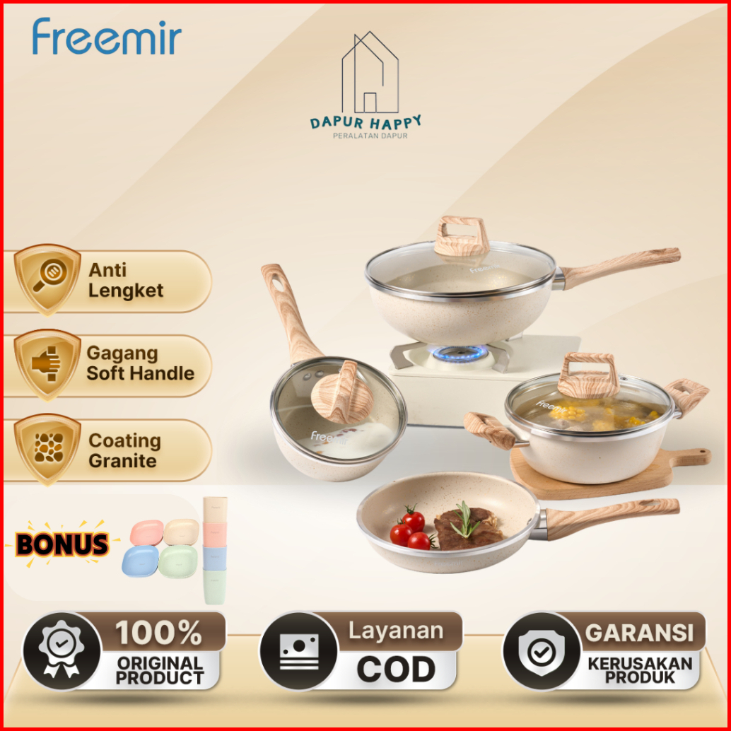 Freemir Wajan Panci Anti Lengket Set Lengkap Paket Okb 4pcs Beige Double Bottom