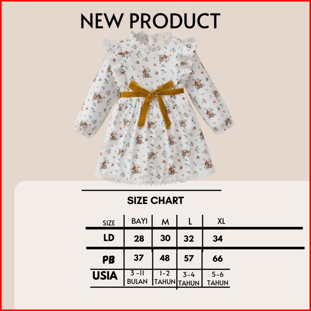 Dress Allina Baju Anak Perempuan Motip Bunga Usia Bayi Sampai 6 Tahun Set Kado
