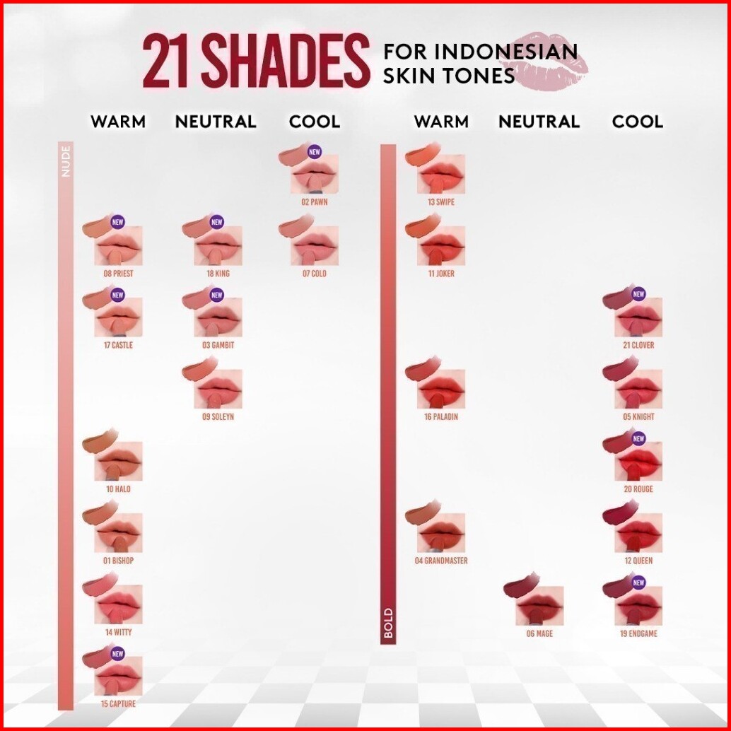 C01 Perle, C01.5 Butter, N02.5 Linen, W04 Tiffany, W03 Goddess, N03 Alter, W02 Coco, W01 Bijoux, N01 Nina, C02 Serene, N02 Charlotte, C03 Eclair