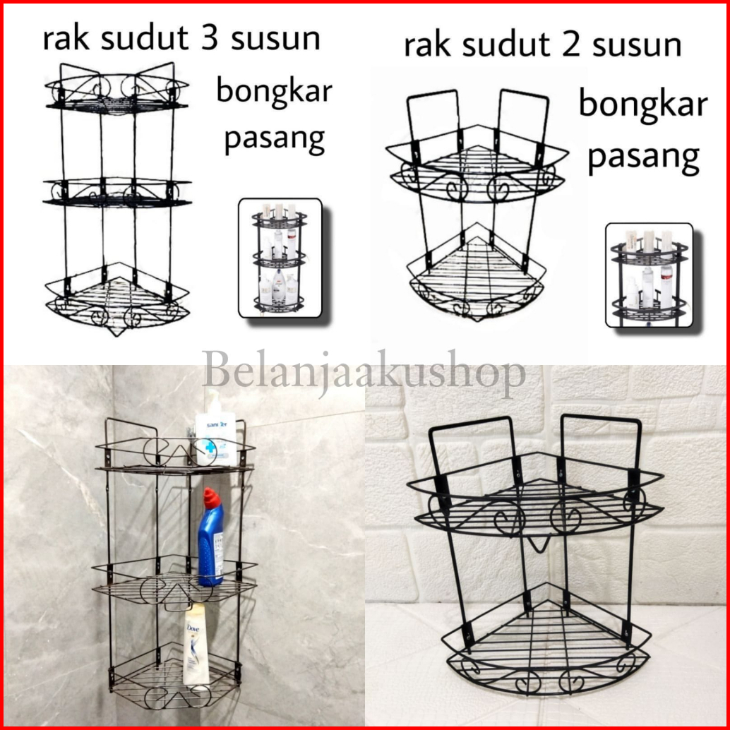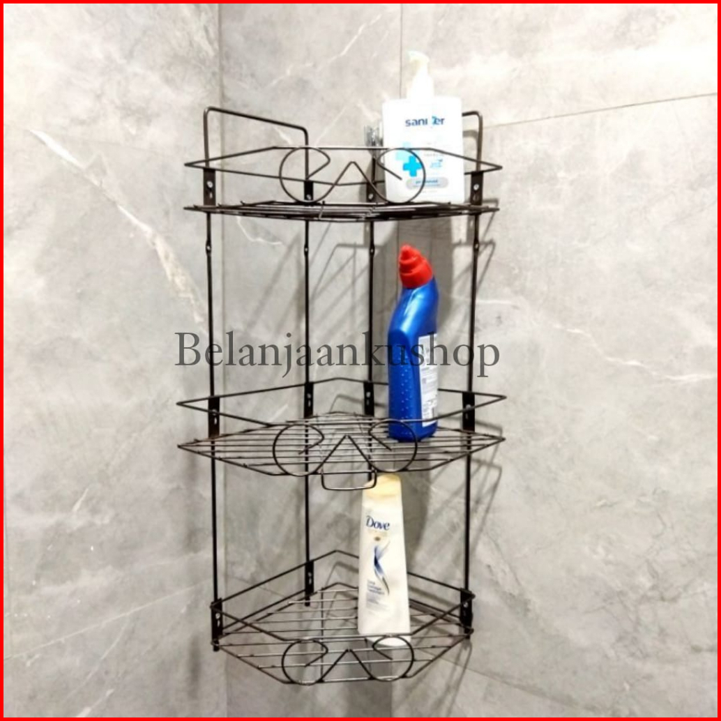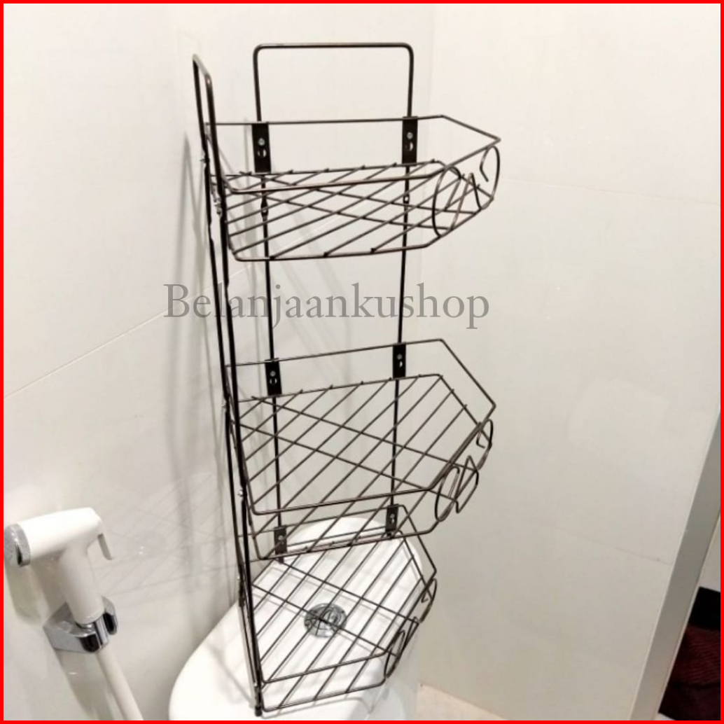 Rak Gantung Kamar Mandi 3 Susun Rak Sudut Kosmetik Pojokan Dapur Rak Sabun Shampo Wc Sebaguna