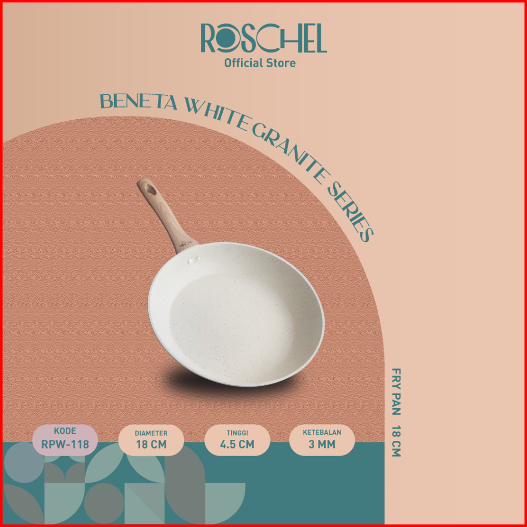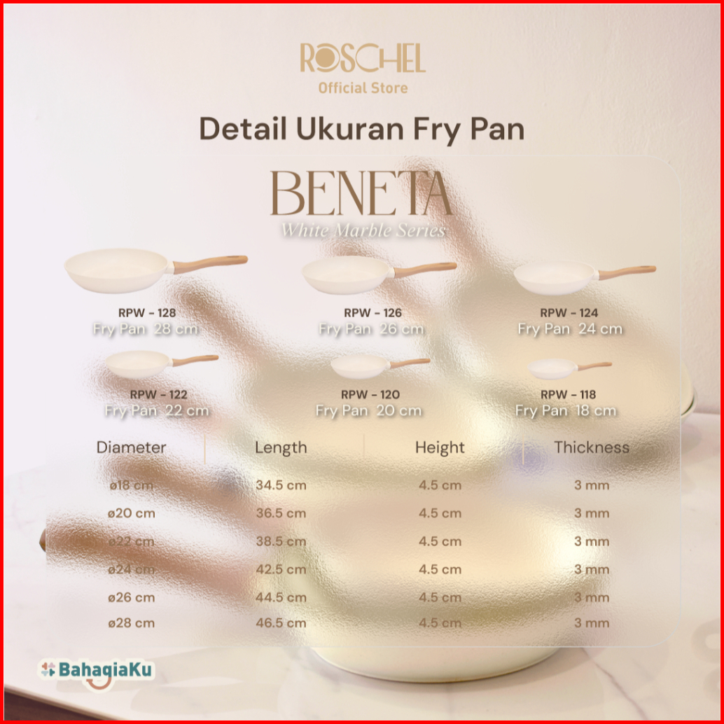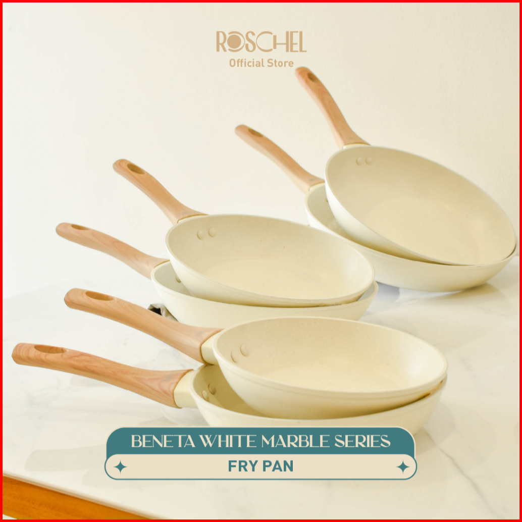 Roschel Beneta White Marble Coating Non-stick Frypan 18 20 22 24 26 28 Cm Panci Wajan Penggorengan Fry Pan Anti Lengket