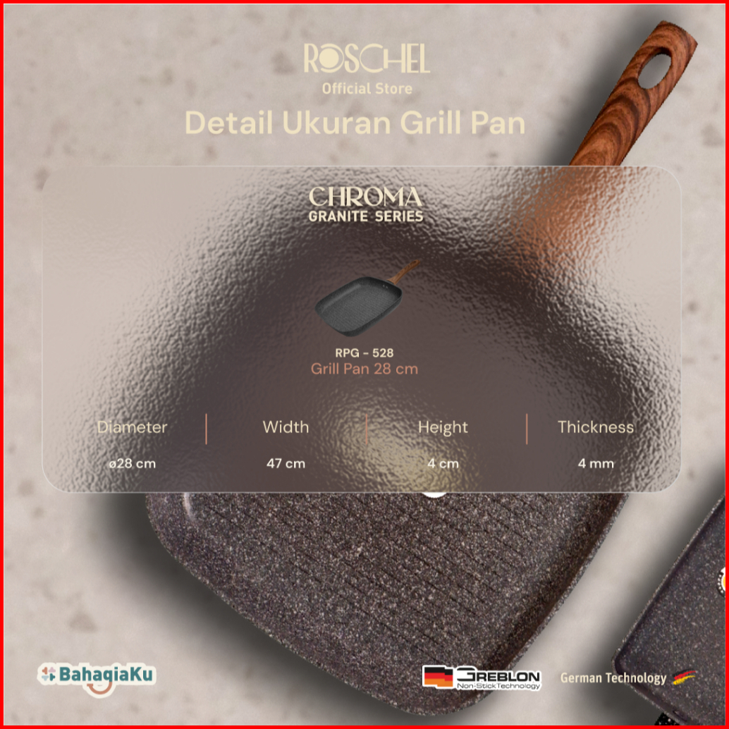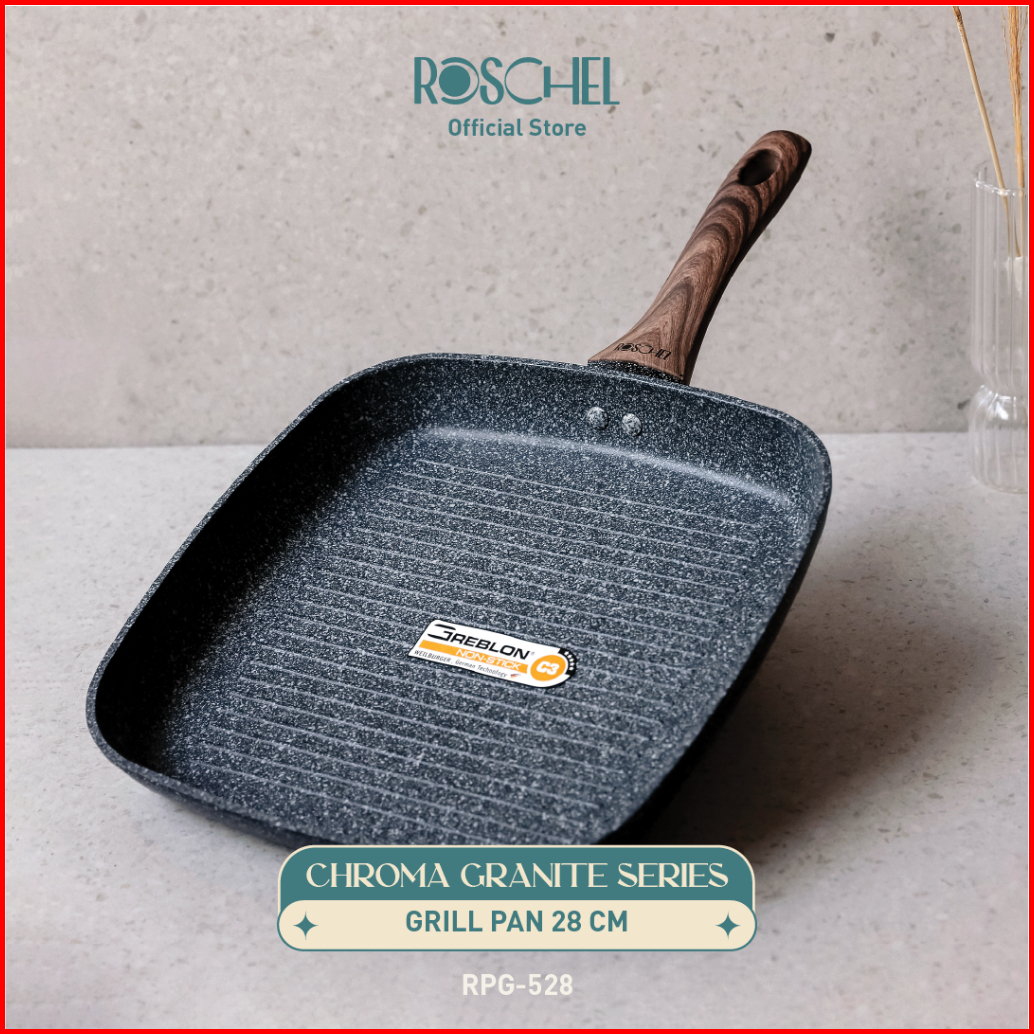 Roschel Chroma Granite Grill Pan 28 Cm Non-stick Greblon C3 German Coating Panci Panggang Penggorengan Pemanggang Bbq Ya