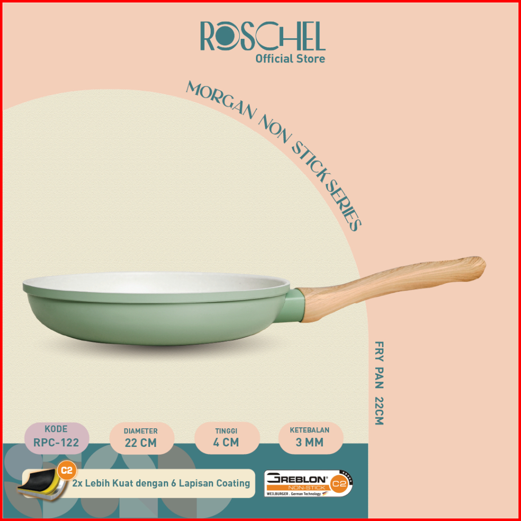 Roschel Morgan Non-stick Frypan 22 Cm Greblon C2 German Coating Panci Wajan Penggorengan Fry Pan Anti Lengket Induksi Pi