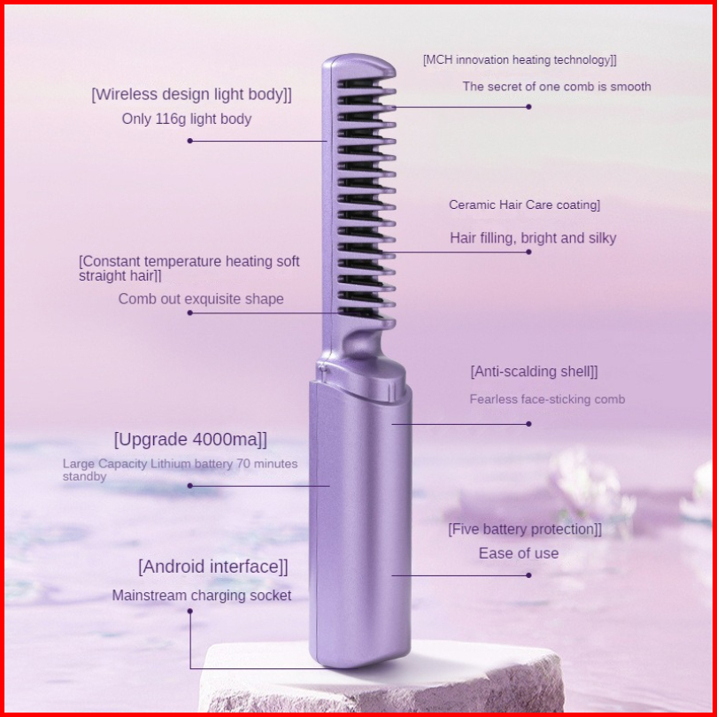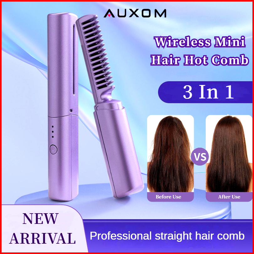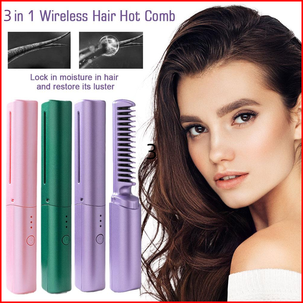 Stok Siapauxom Catokan Rambut 3 In 1 Catok Pelurus Rambut Sisir Listrik Ion Wet Dry Dual Use Mini Hair Straightener Curl