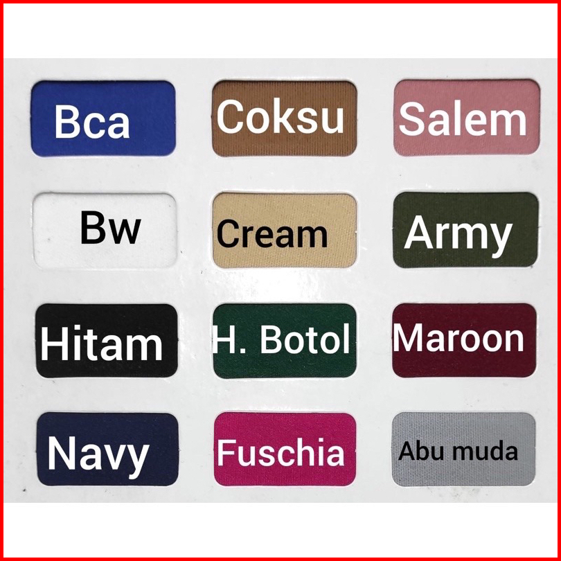 Hitam, PUTIH BW, COKSU, NAVY, MAROON, ABU MUDA/SILVER
