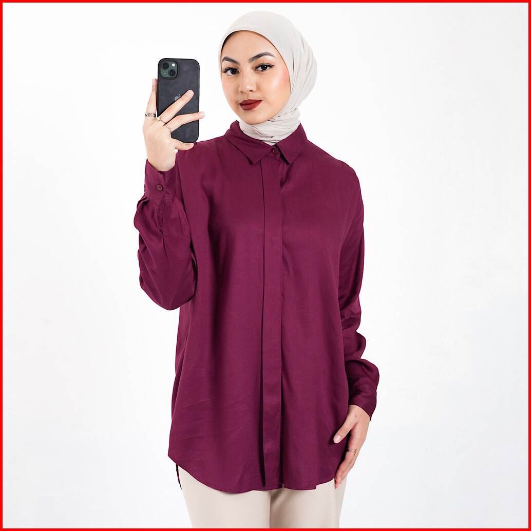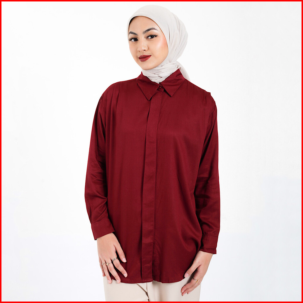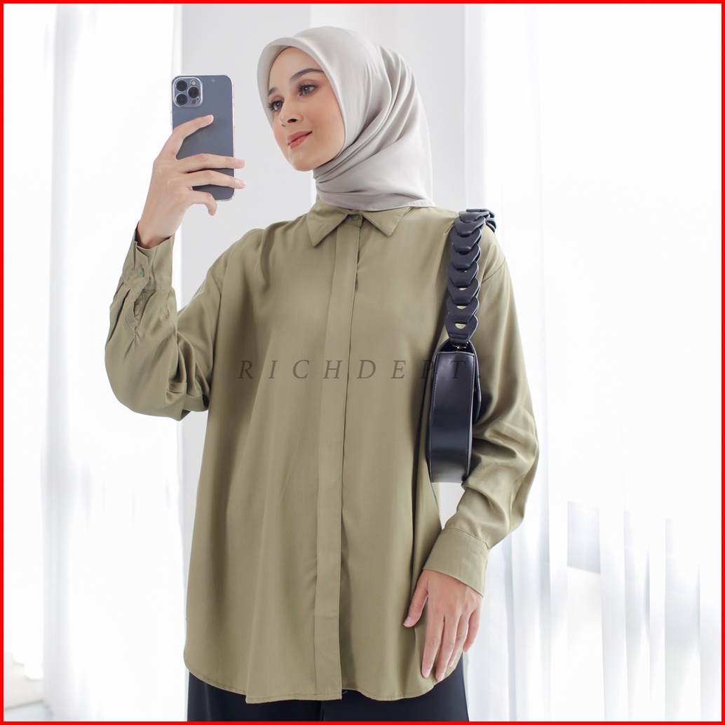 Richdept Lexa Shirt Kemeja Wanita Muslim Tangan Panjang Outfit Hijab Baju Rayon Twill