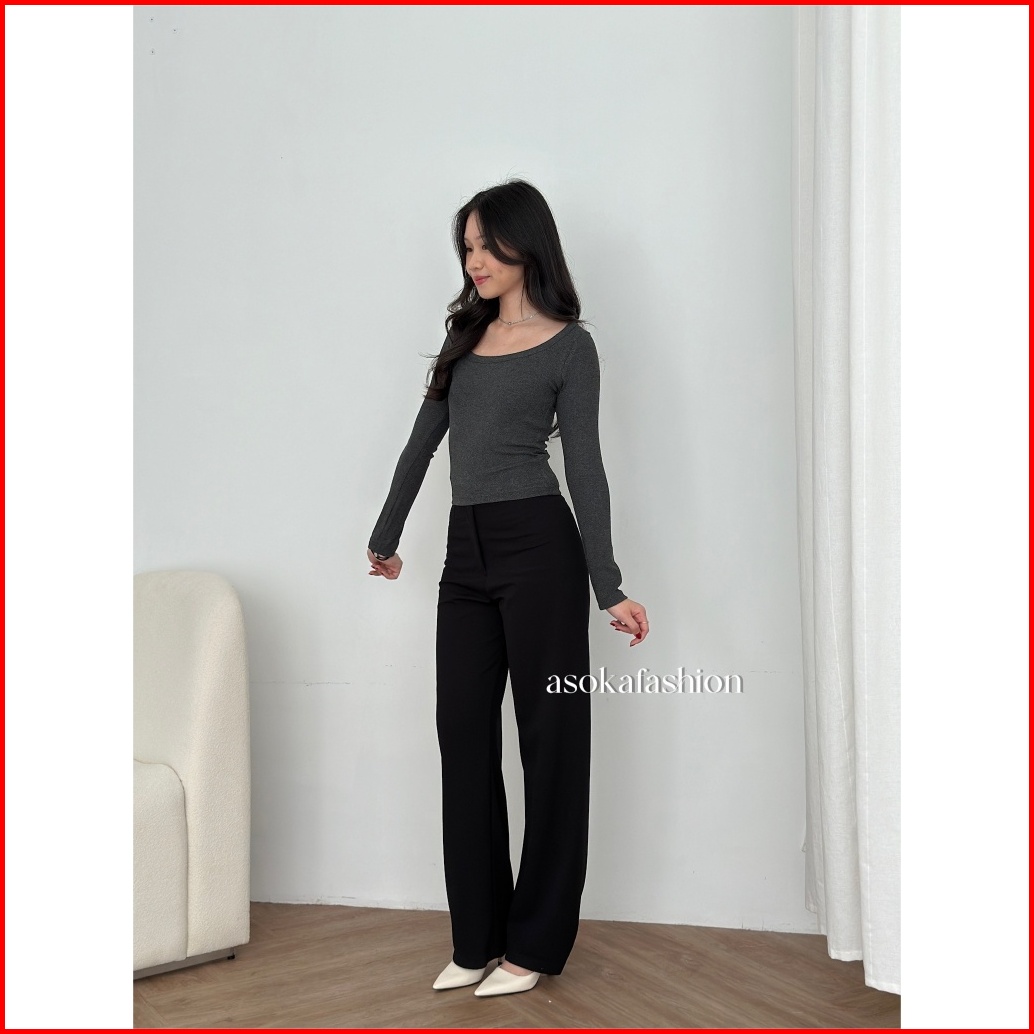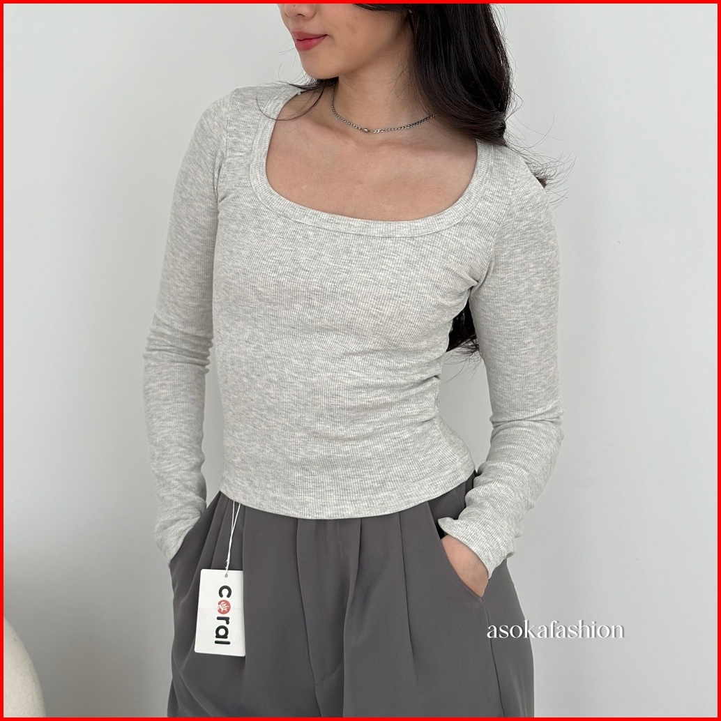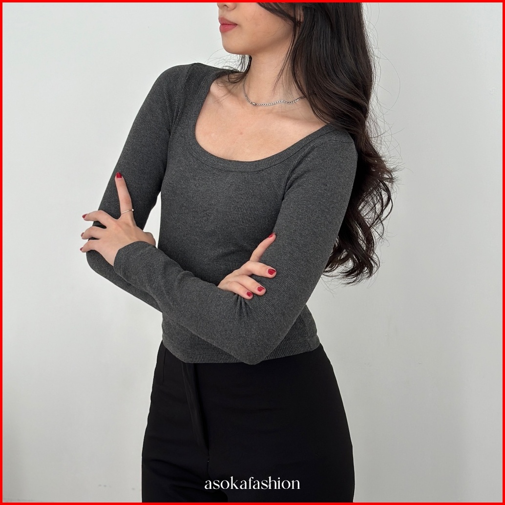 Asoka Glory Top 771 - Knitwear Longsleeve Knit Fit Body - Atasan Wanita U Neck - Crop Stretch T-shirt