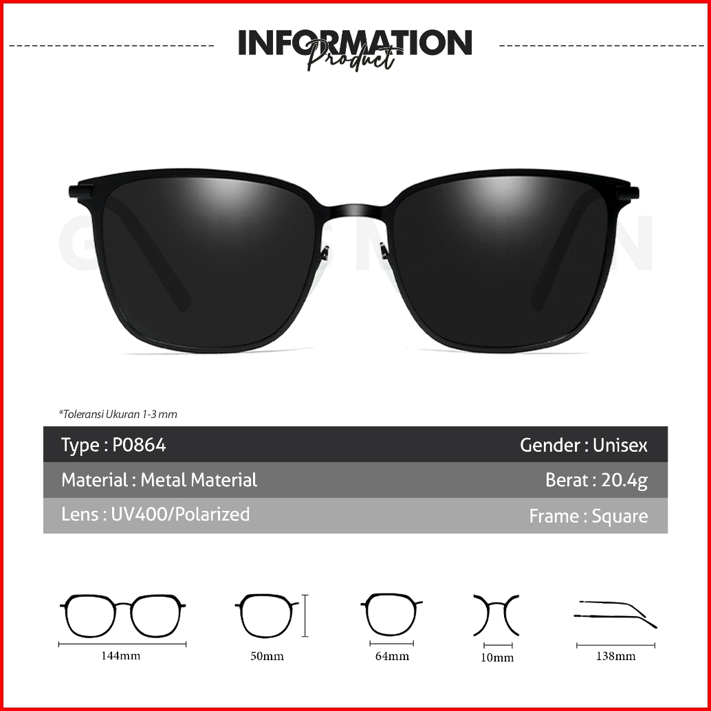 Genius Maiden Kacamata Hitam Kotak Sunglasses Polarized Fashion Pria Wanita Uv 400 Anti Silau P0864 840