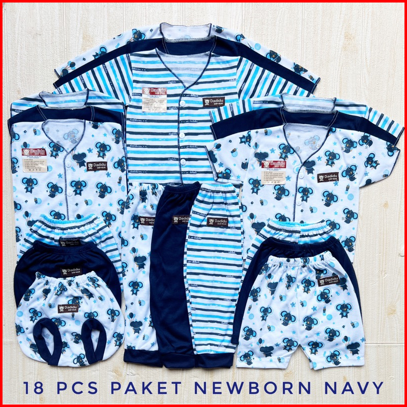 Dadidu Navy Series - 18 Pcs Paket Baju Bayi Kekinian Celana Bayi Setelan Bayi Baju Bayi Newborn Baju Bayi Baru Lahir Baj