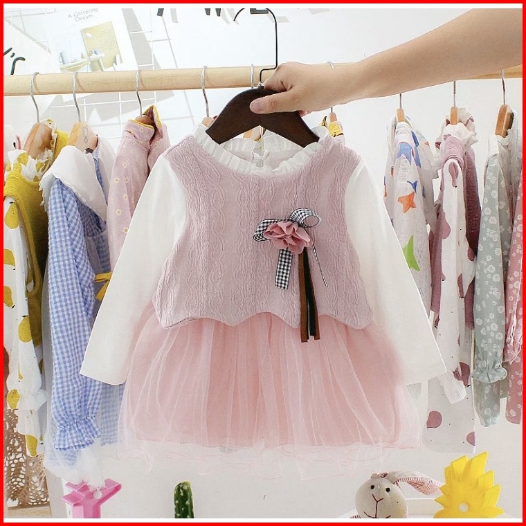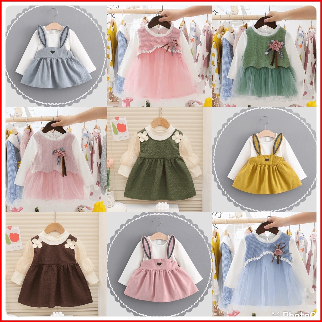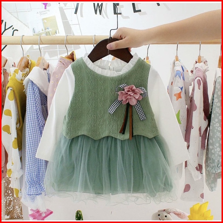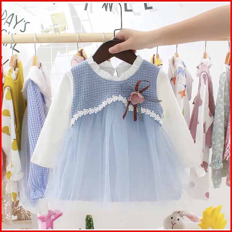 Incessbaby Dress Gaun Baju Anak Bayi Perempuan Import Korea Newborn Lengan Panjang Tutu Lebaran Aqiqah Natal