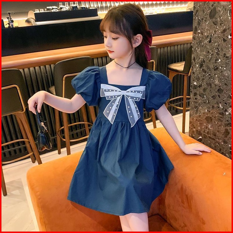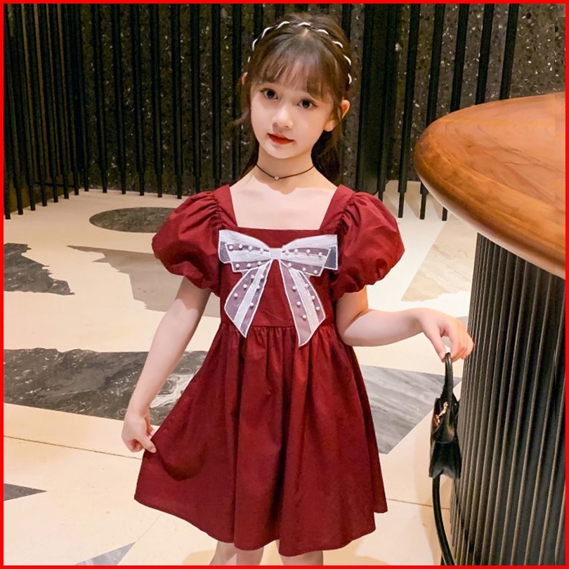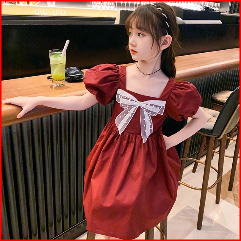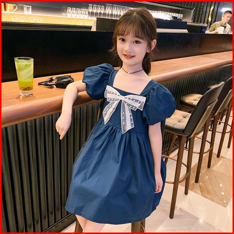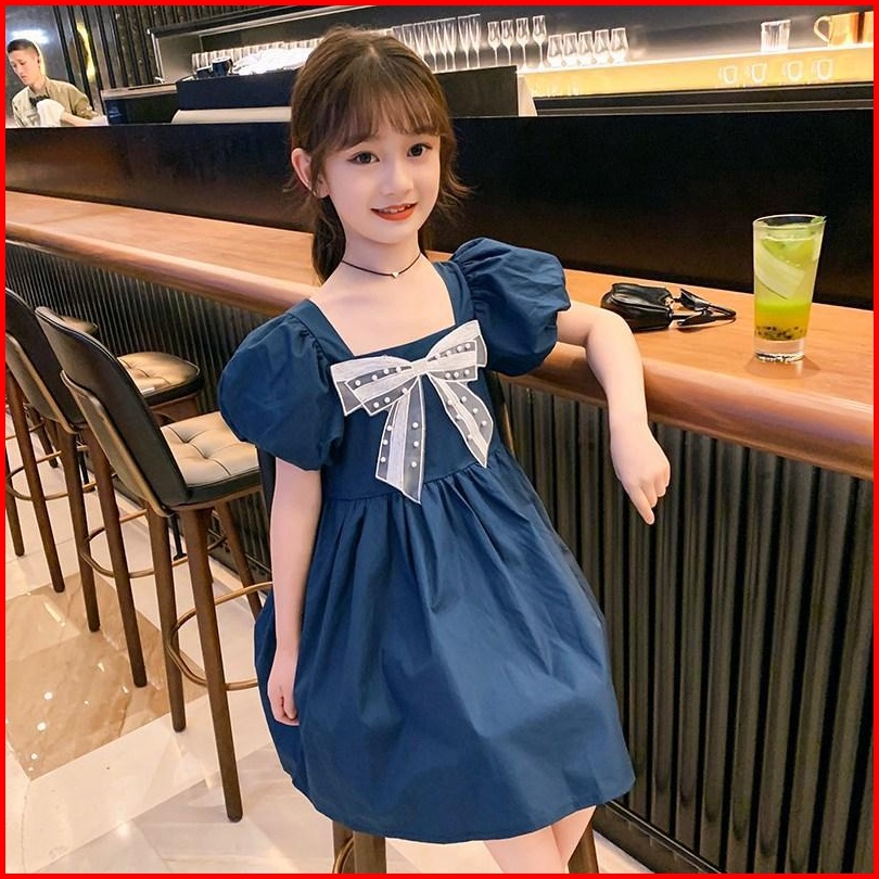 Dress Anak Cewek Terbaru 2025 Korea Lengan Pendek Motif Dress Pita Renda Untuk Anak Usia Sampai 6 Tahun Ke Atas Simple D