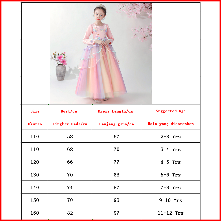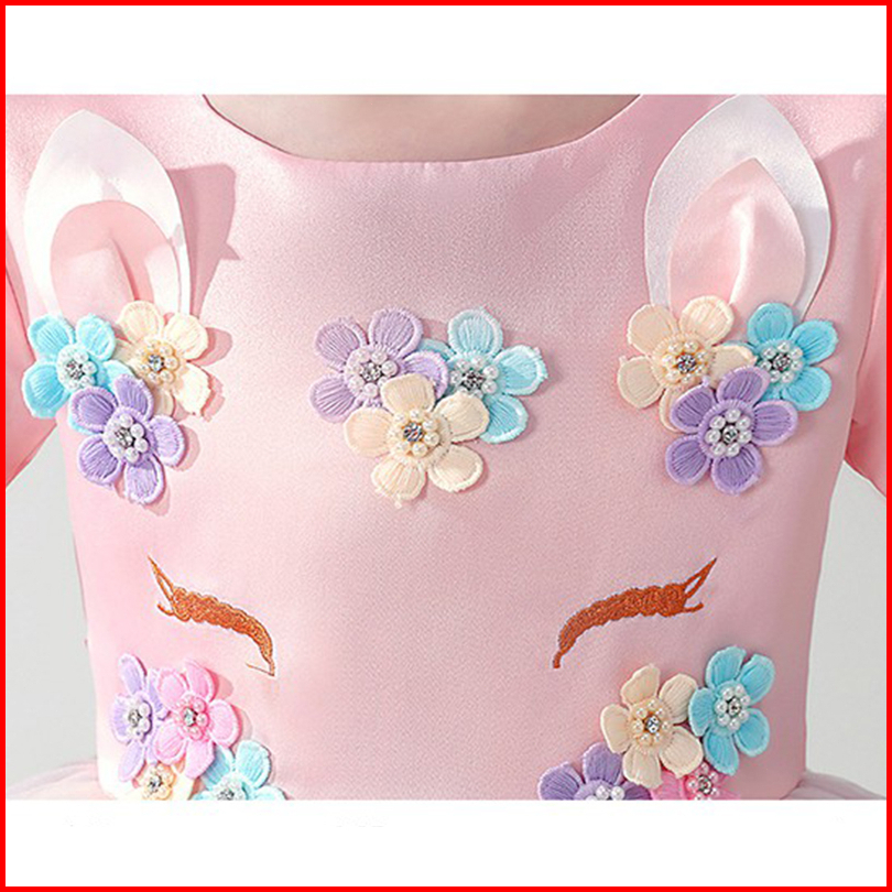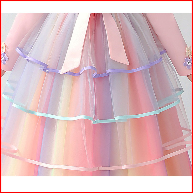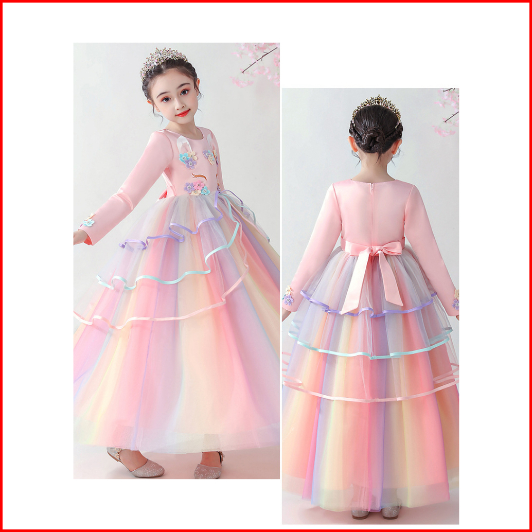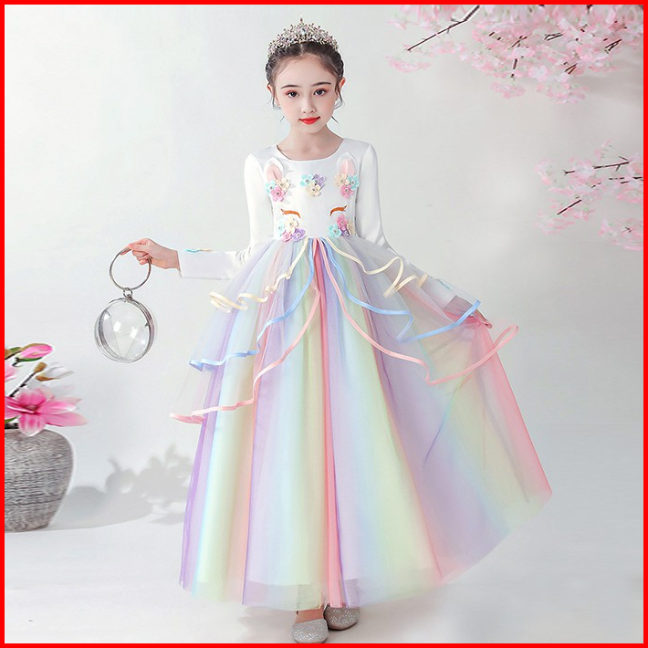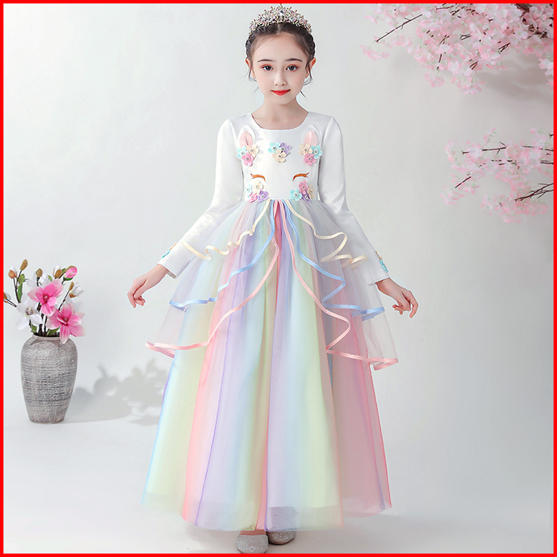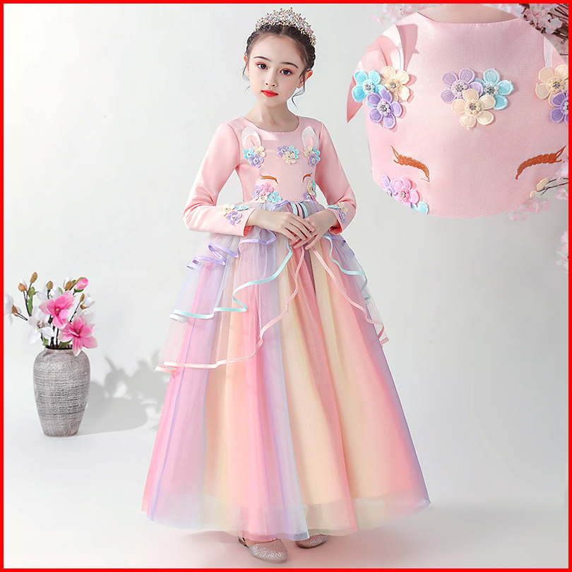 Gadis Putri Unicorn Gaun Anak Lengan Panjang Bunga Pesta Kostum Tutu Gaun Untuk 2-10 Tahun