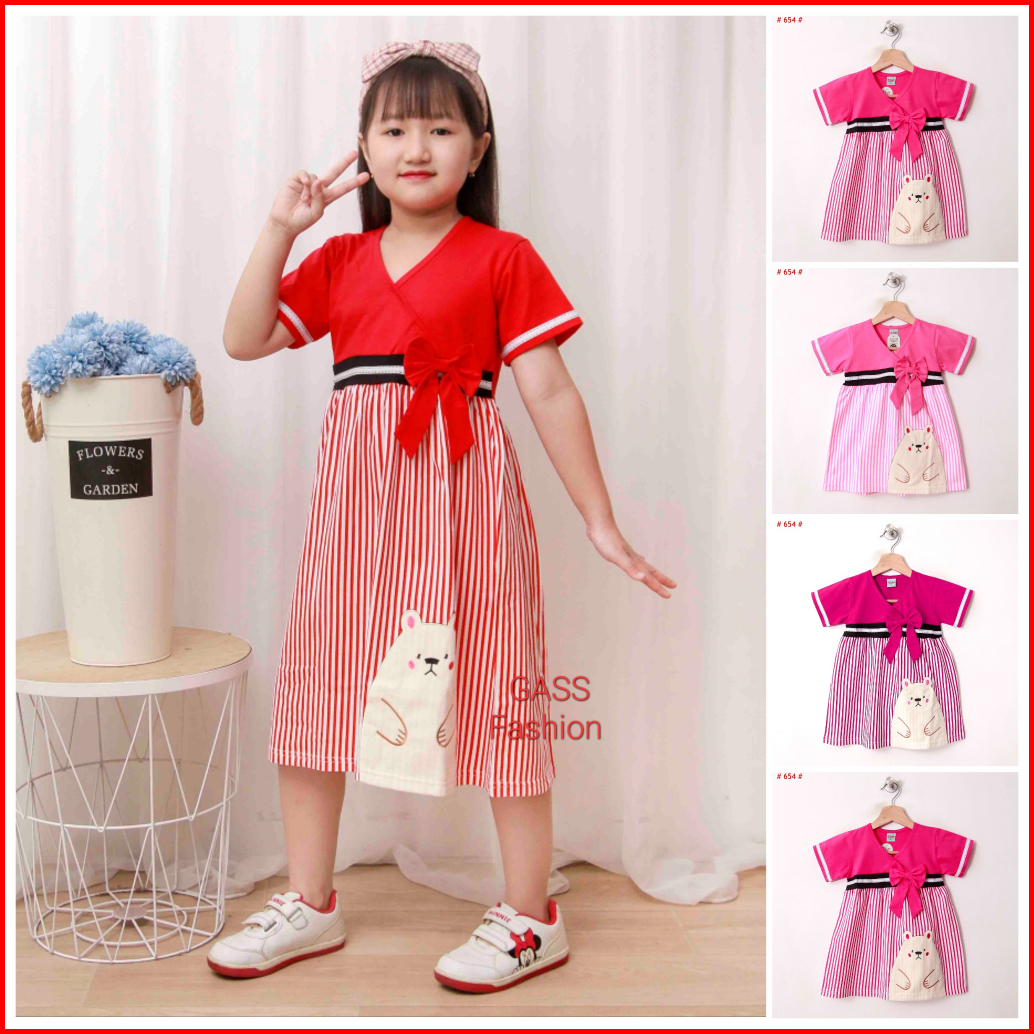 Baju Anak Cewek Perempuan Dress Usia 1 2 3 4 5 6 7 8 Tahun Bordir Bear