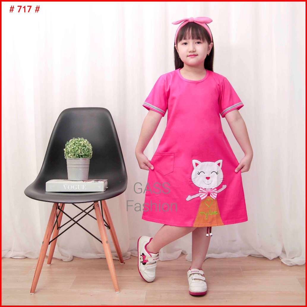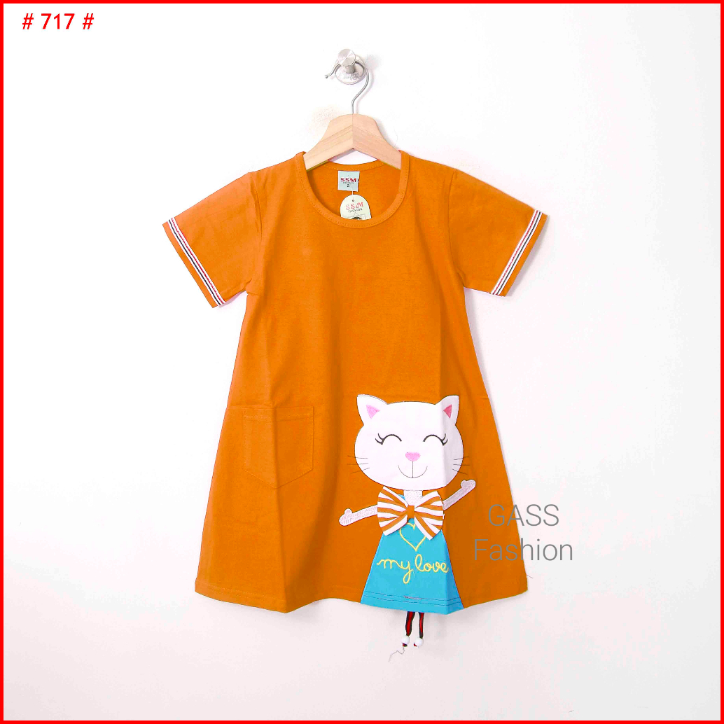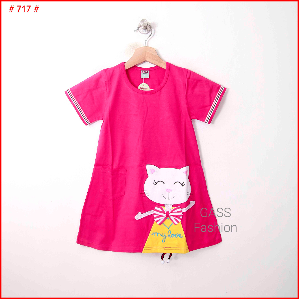 Baju Anak Cewek Perempuan Dress Kaos Katun Usia 3 4 5 6 7 8 Tahun Bordir Gambar Kucing