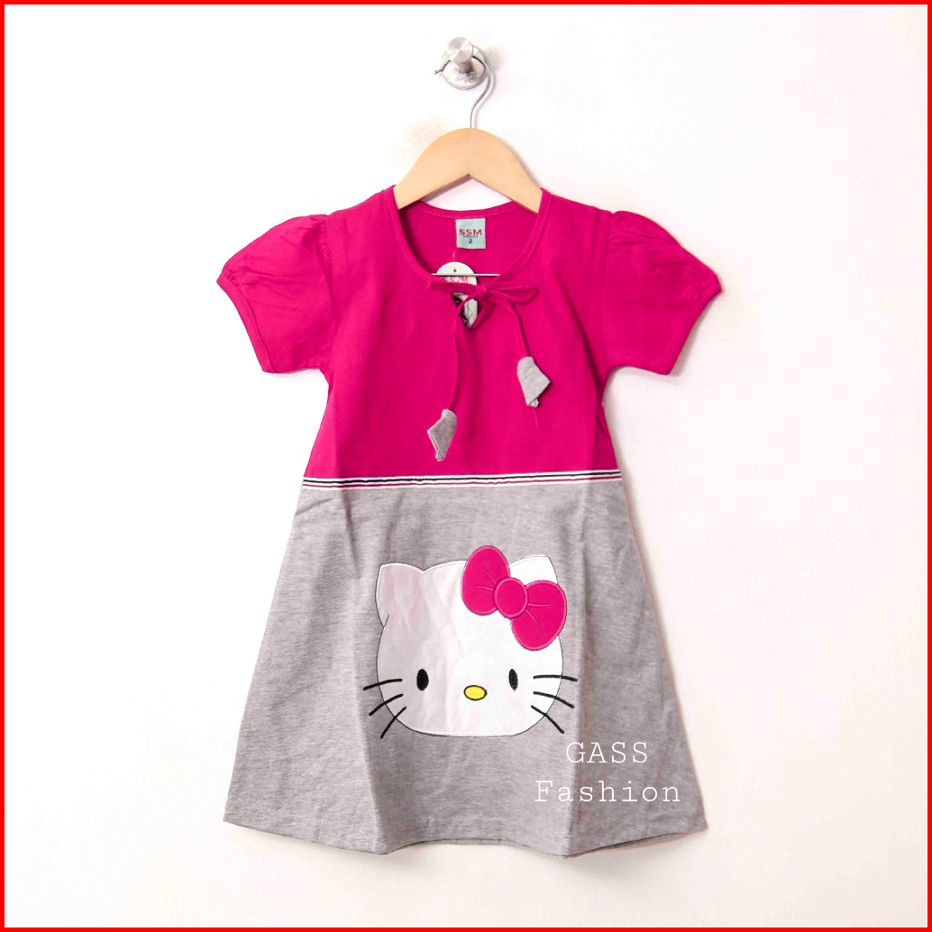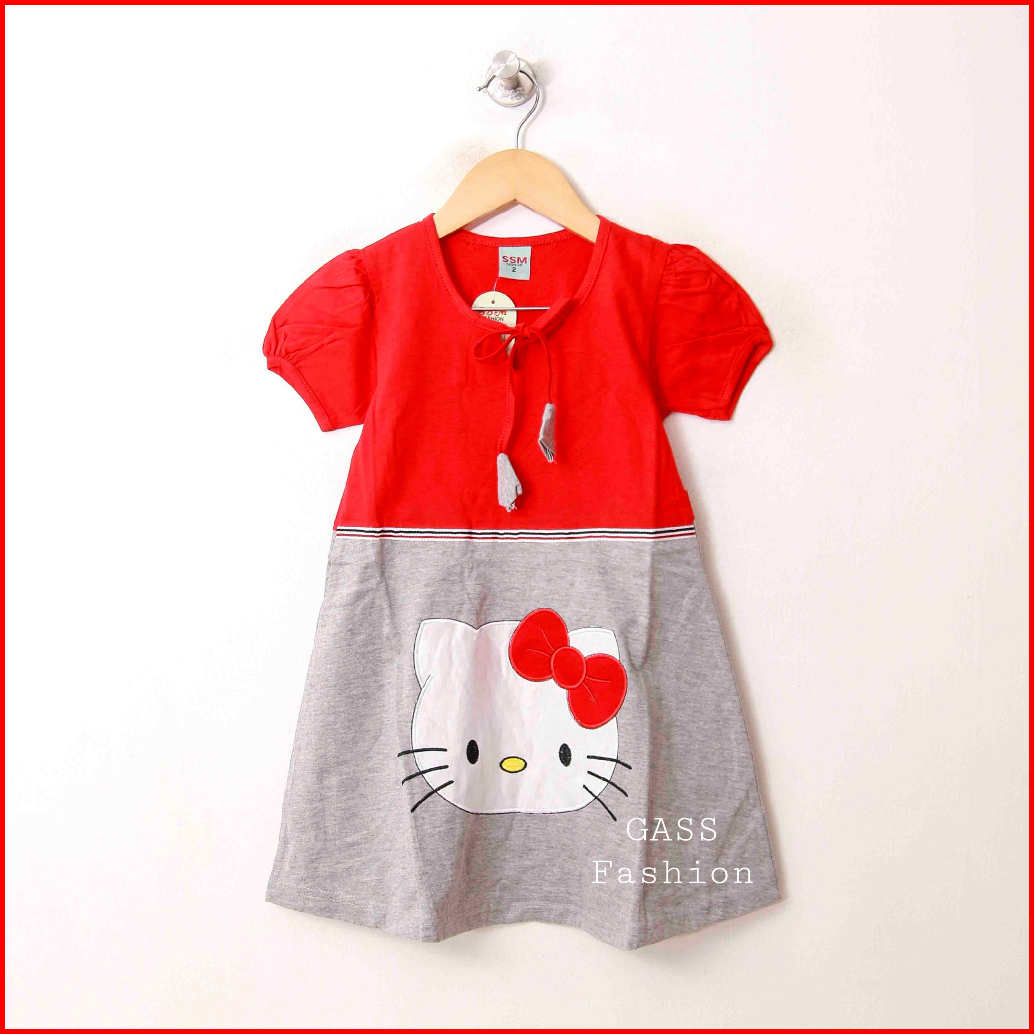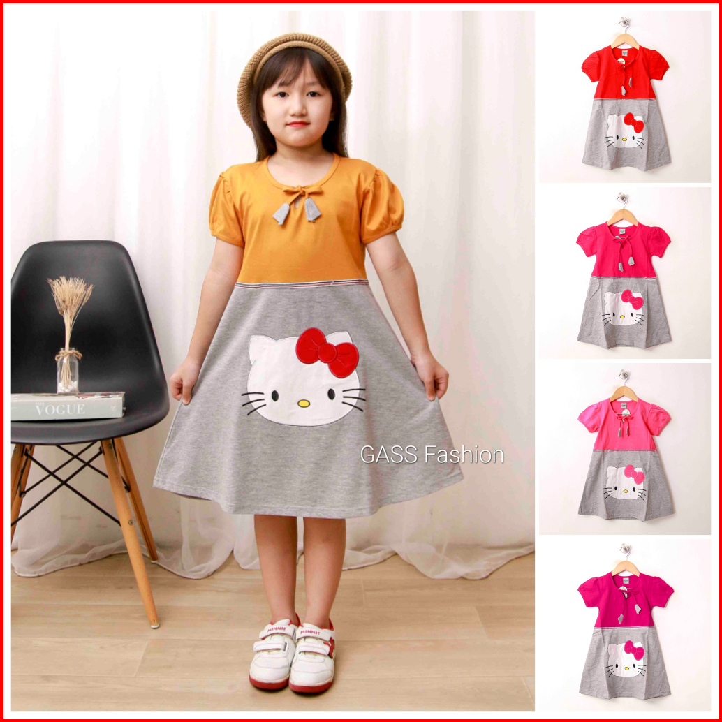 Baju Anak Cewek Perempuan Dress Usia 1 2 3 4 5 6 7 8 Tahun Bordir Hello Kitty