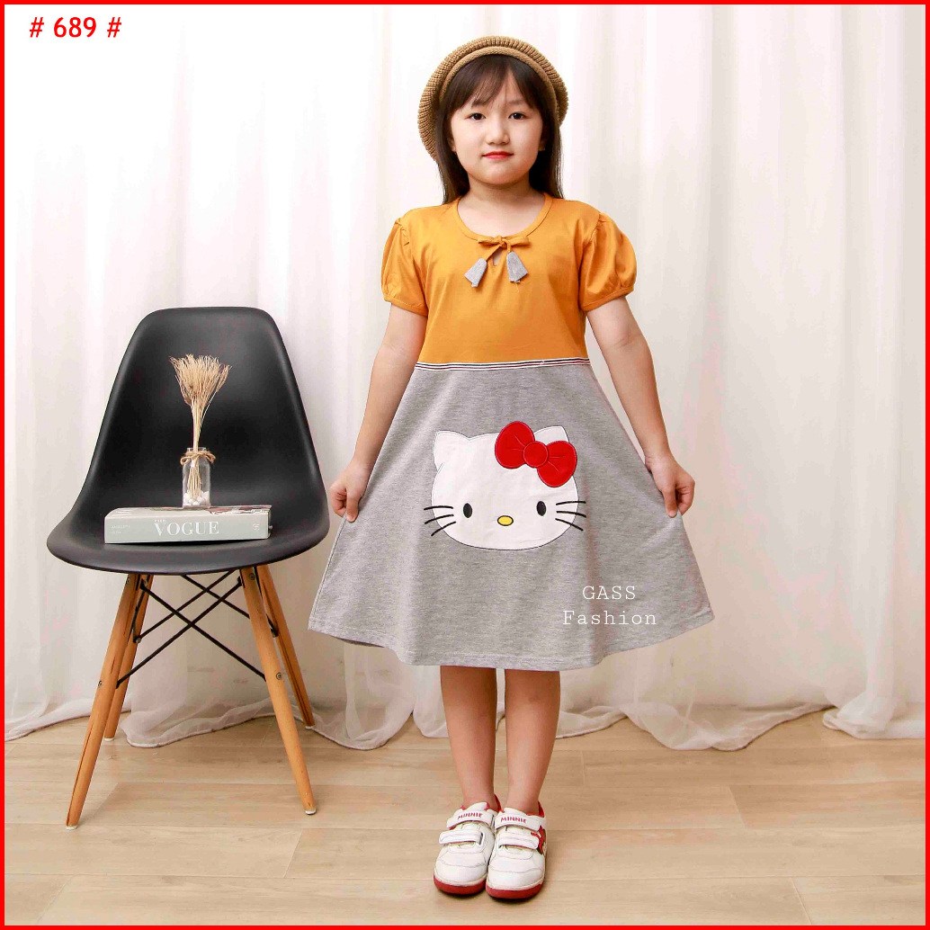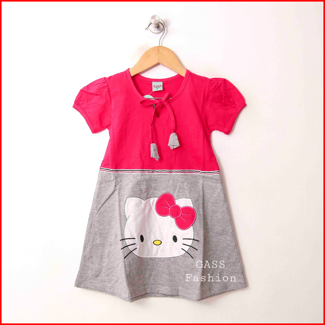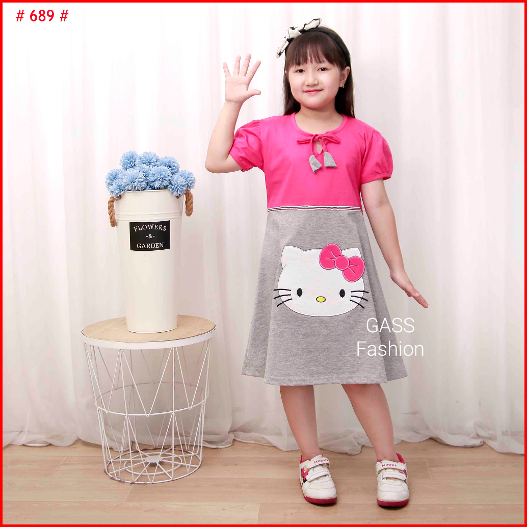 Baju Anak Cewek Perempuan Dress Usia 1 2 3 4 5 6 7 8 Tahun Bordir Hello Kitty