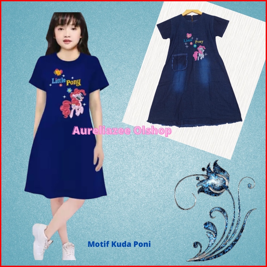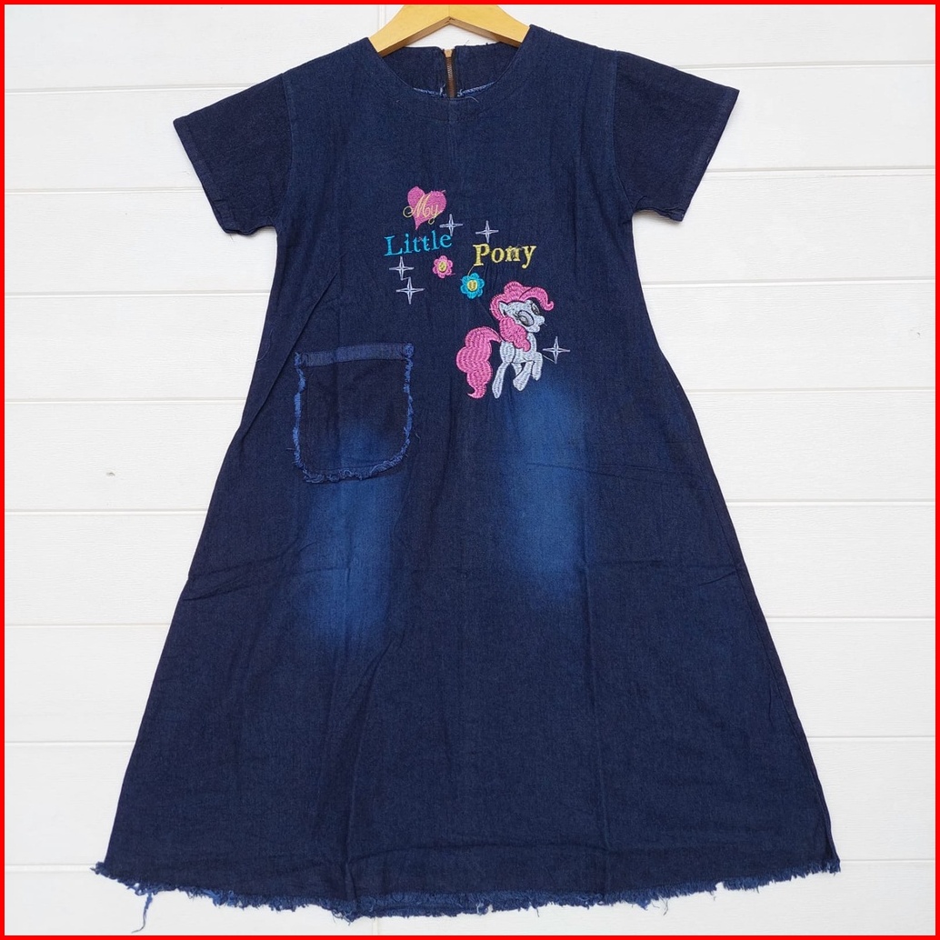 Dress Jeans Anak Bordir Kuda Poni Usia 1-12 Thn