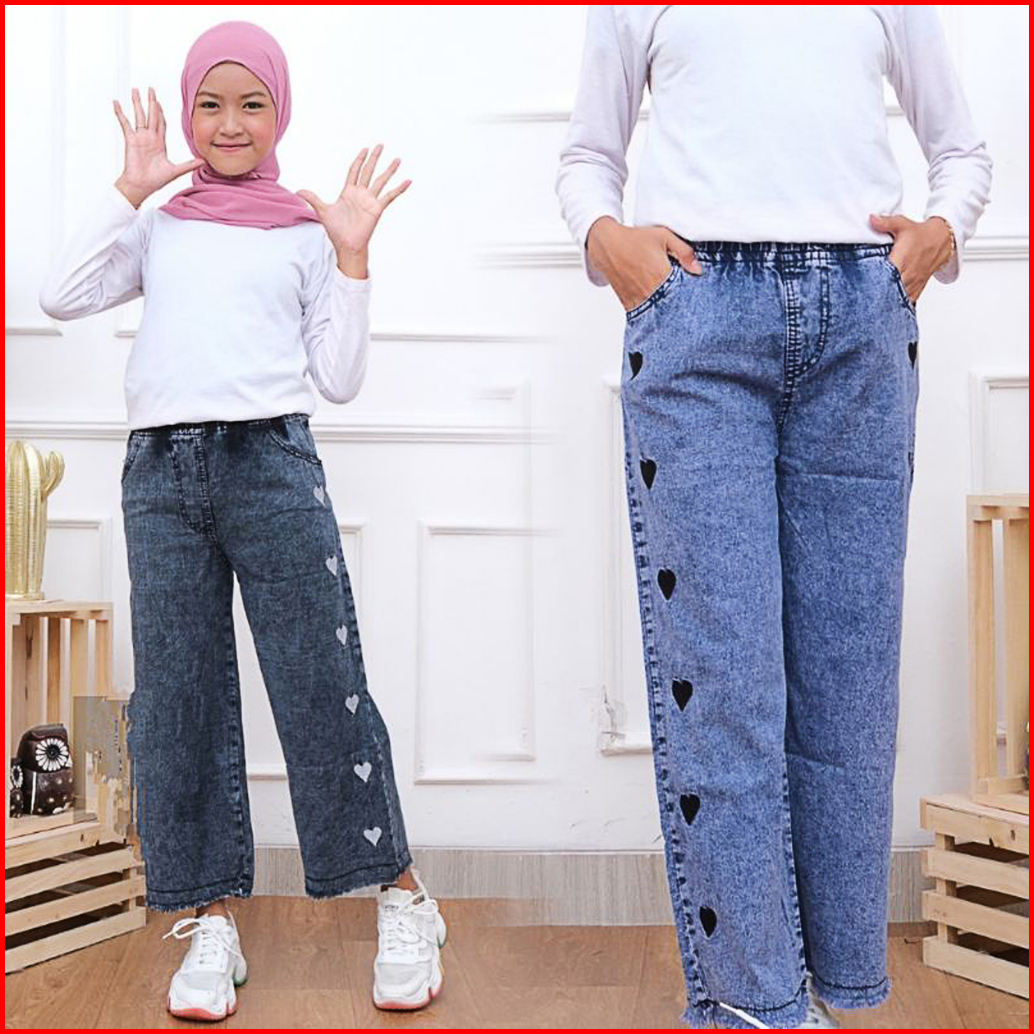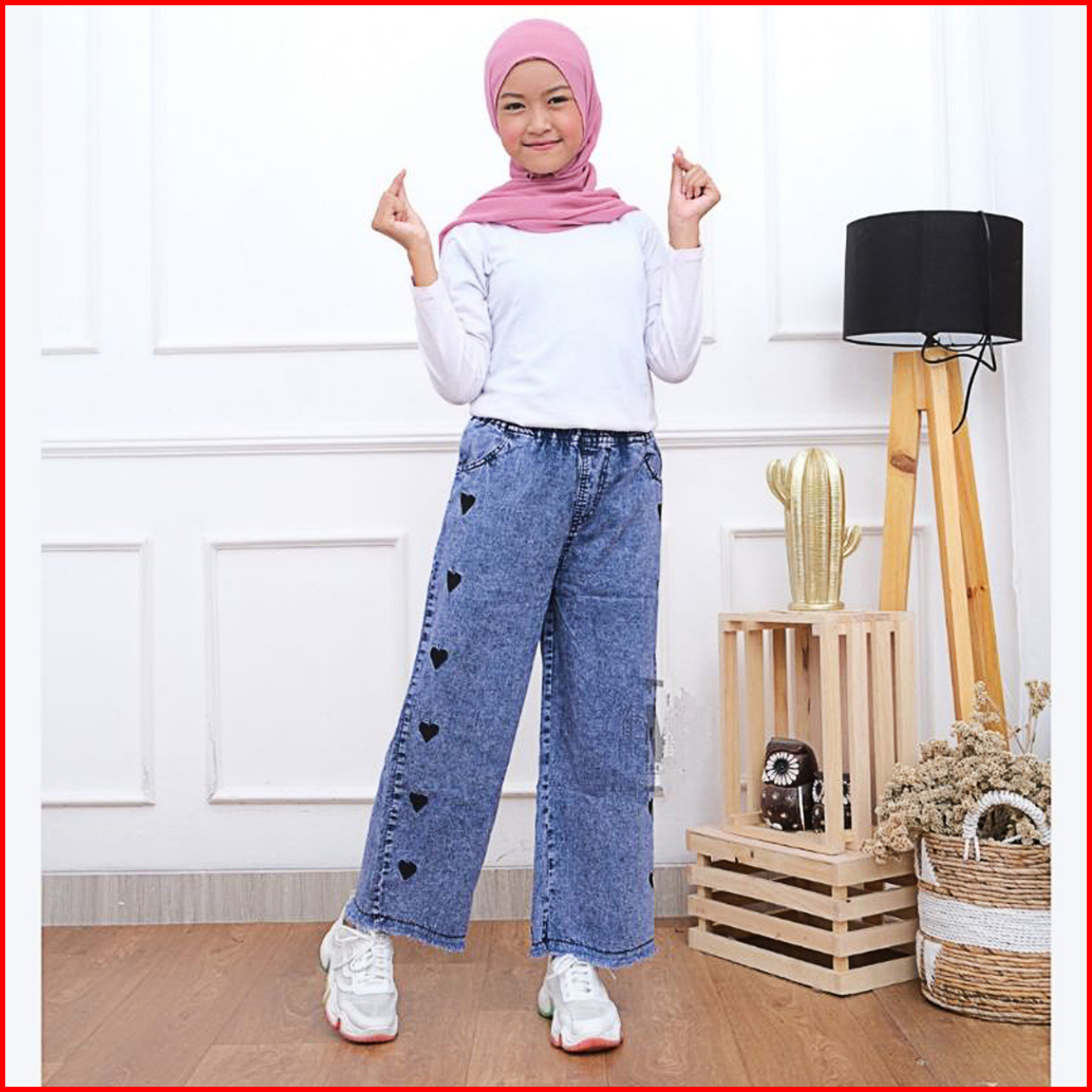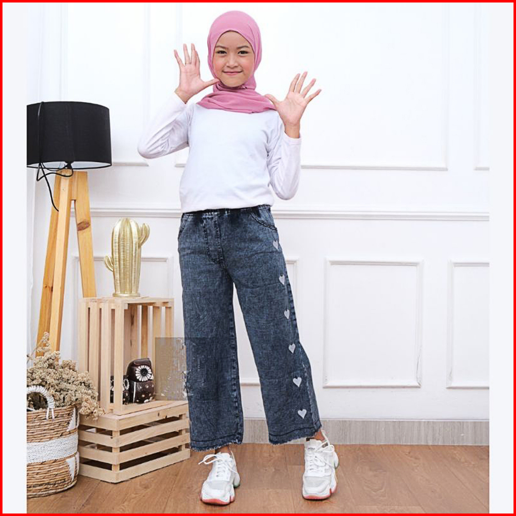 Kulot Jeans Anak Perempuan 4-14 Tahun Panjang Anak Tanggung Motif Love