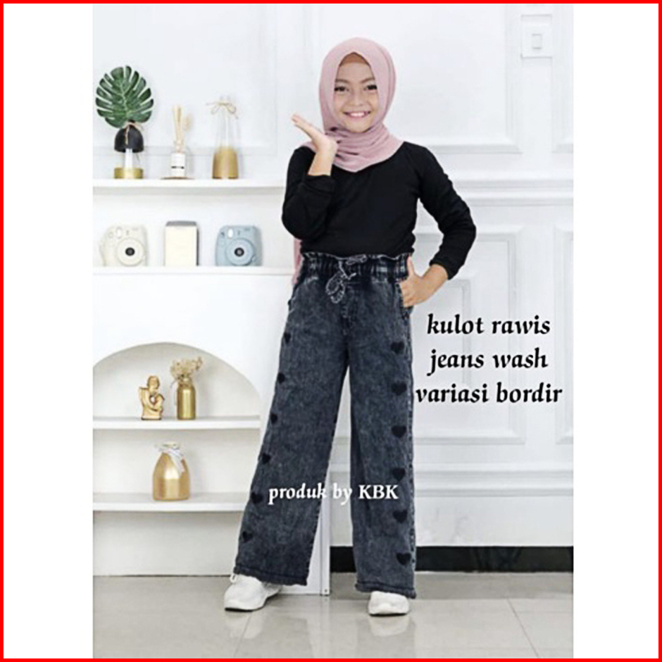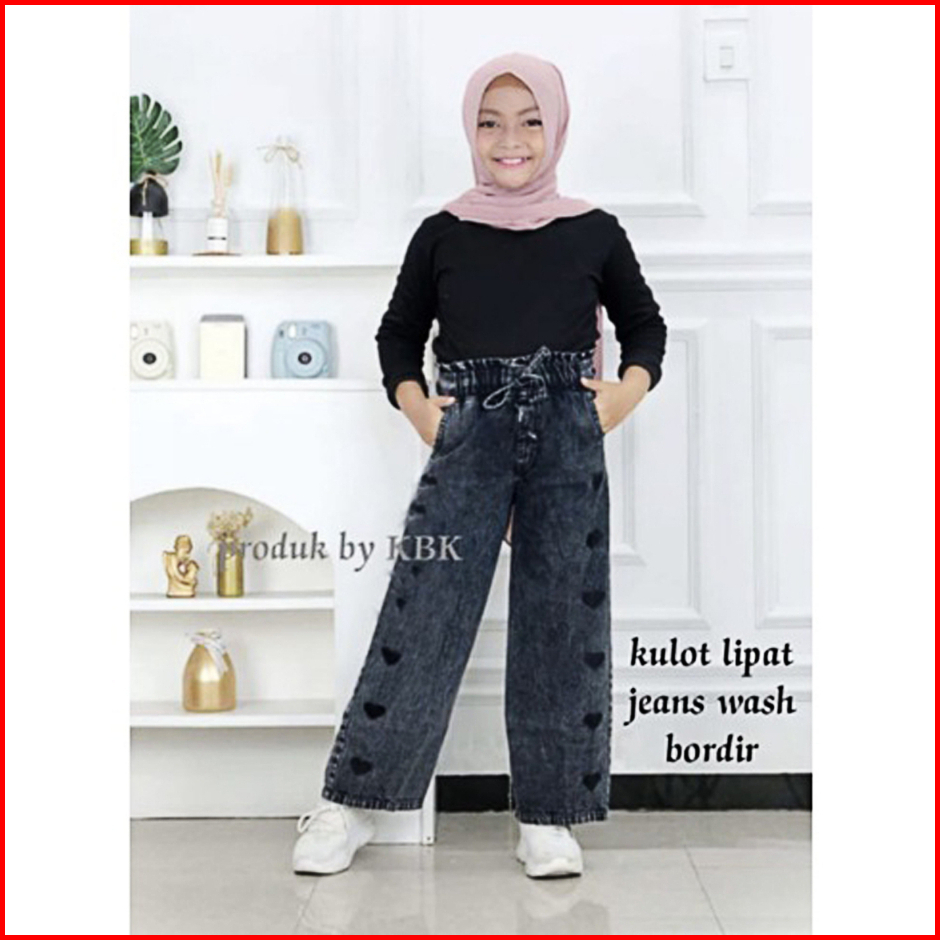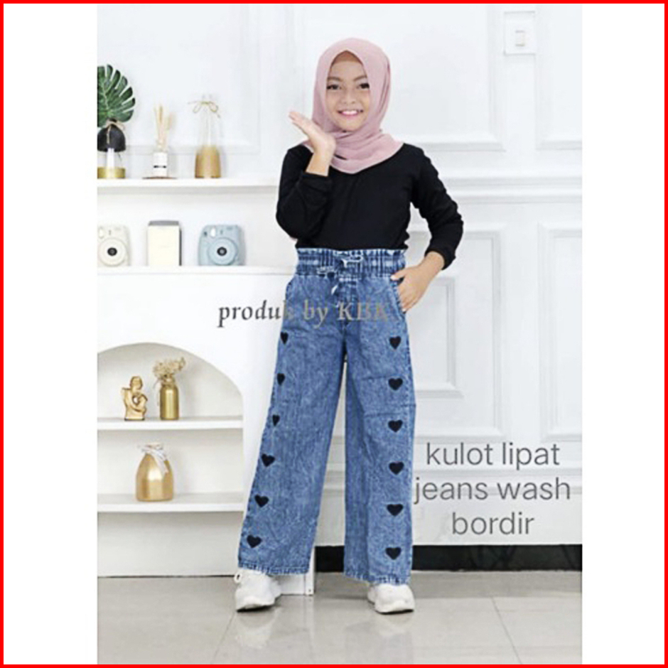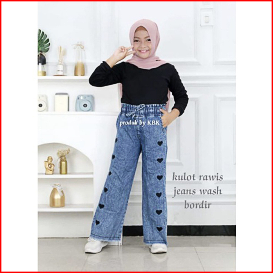Kulot Jeans Anak Perempuan 4-14 Tahun Panjang Anak Tanggung Motif Love