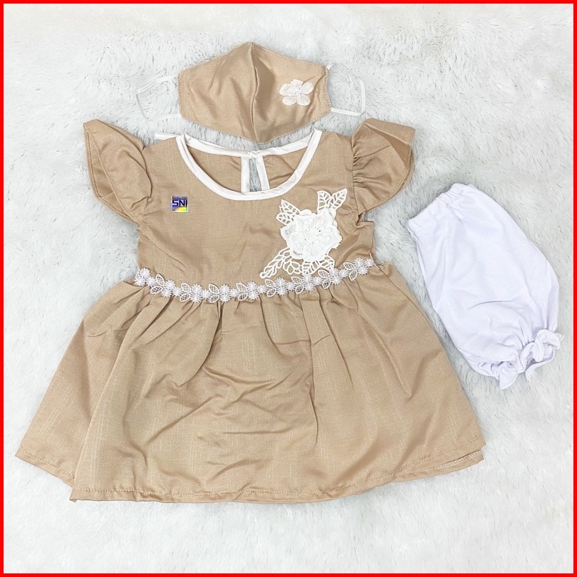 Dress Baby Newborn Renda Bahan Polos 0-6 Bln