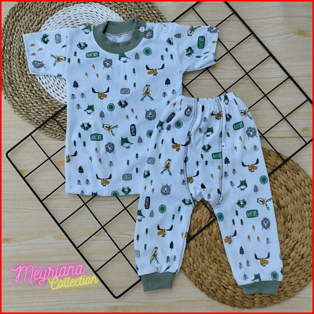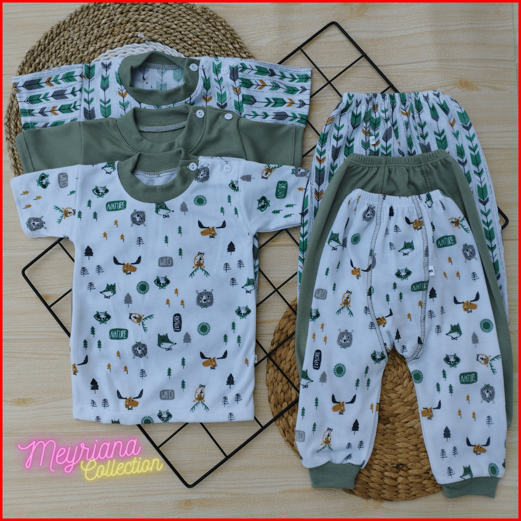 Promo Isi 6 Pcs Baju Bayi Lengan Pendek Celana Pempers Panjang Series Sage Usia 0-18 Bulan Meyriana Collection