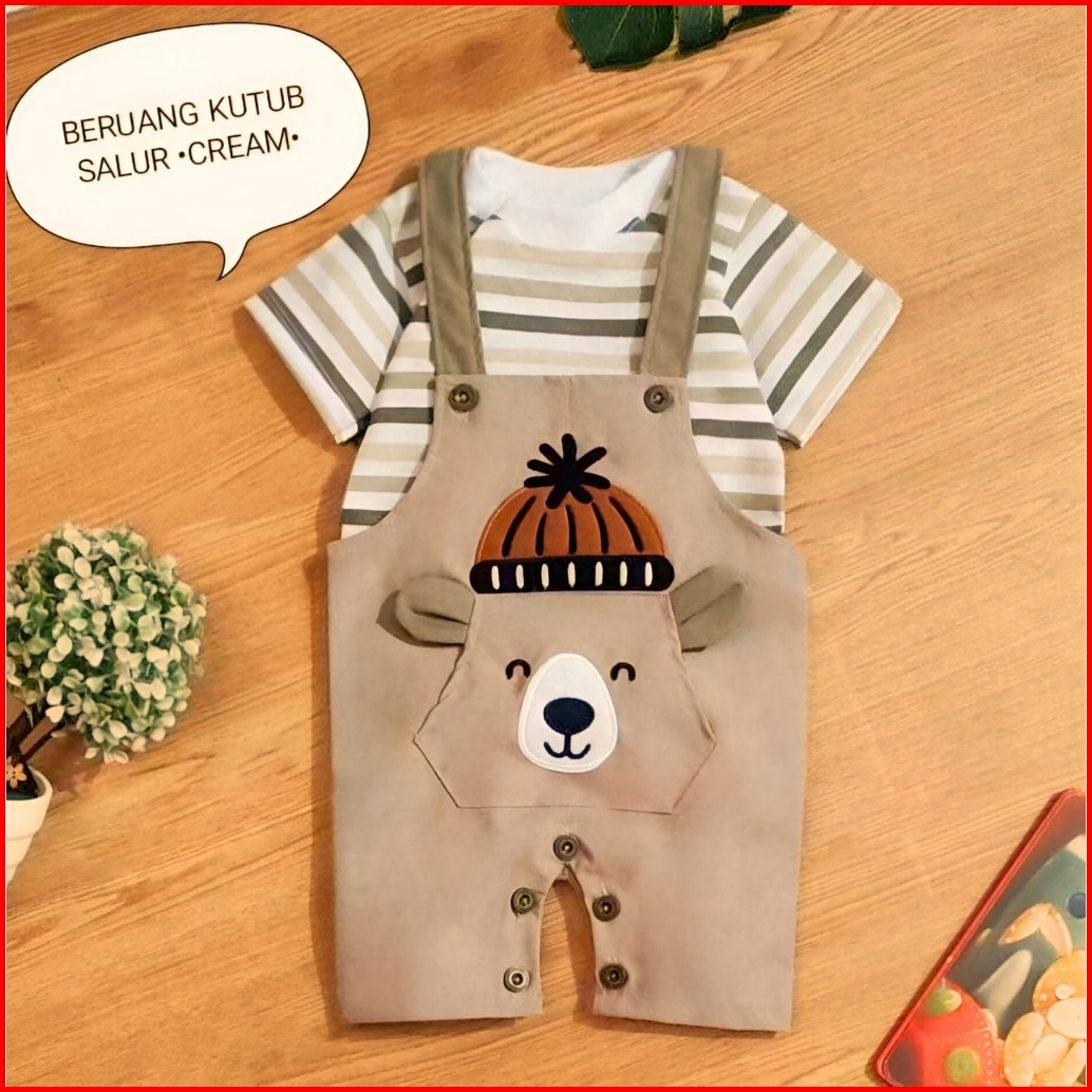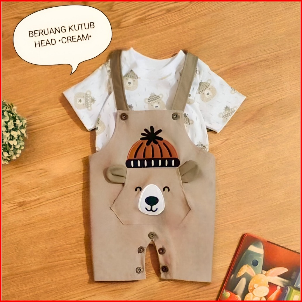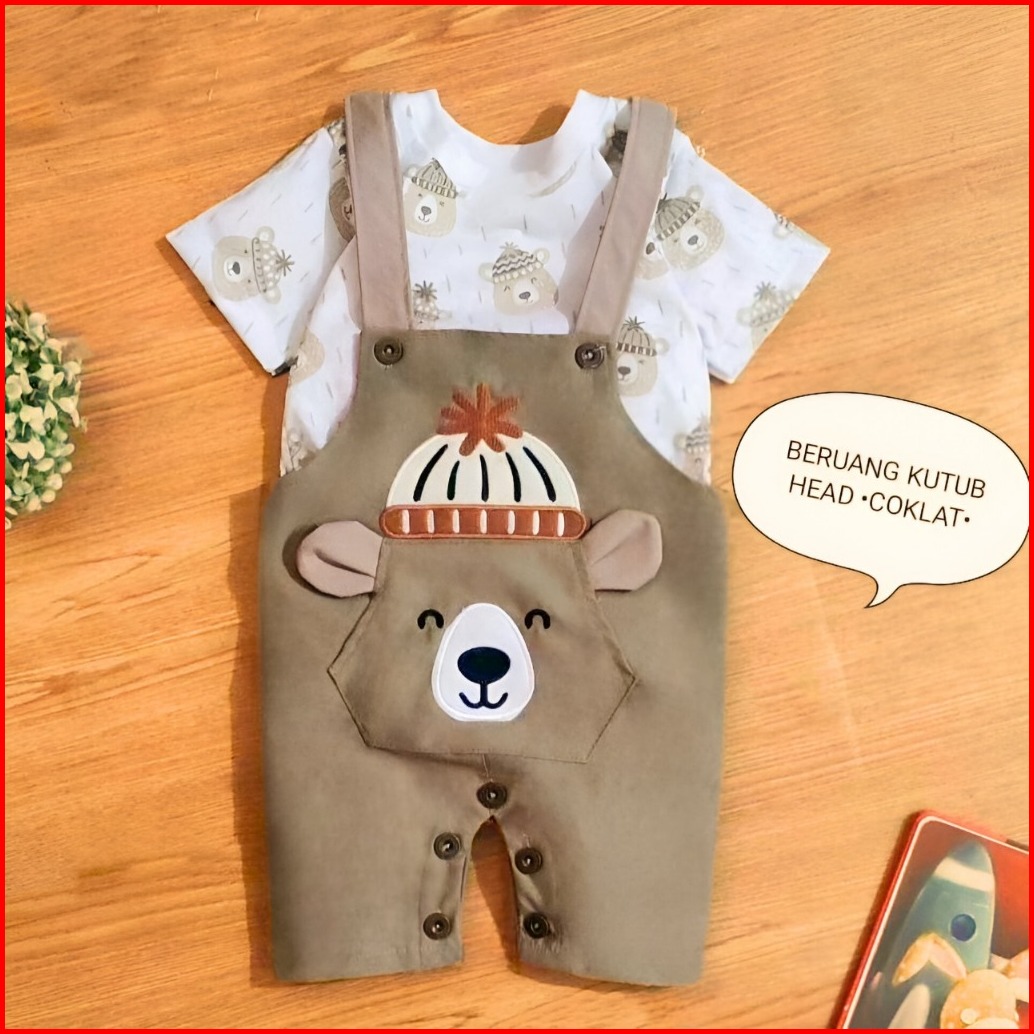 Mds Setelan Overall Anak Bayi Laki-laki Motif Honey Bear Estimasi Usia 3-12bulan