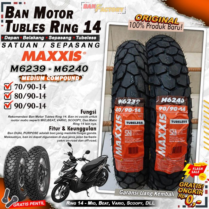 Ban Motor Matic Tubeless Maxxis 6239 6240 Ring 14 Ban Motor Beat Vario Scoopy Tubles Depan Belakang Sepasang Ring 14