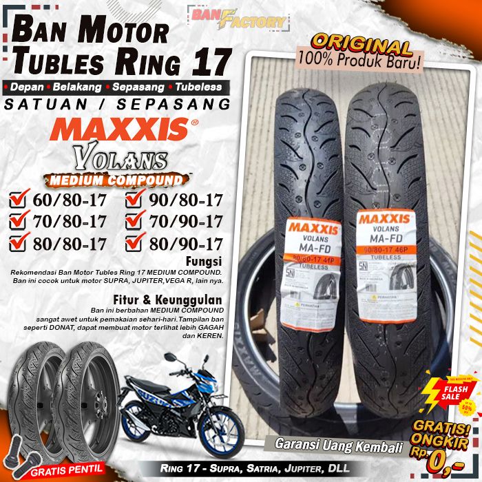 Ban Motor Tubeless Maxxis Volans Ring 17 Ban Motor Vixion Satria Supra Jupiter Tubles Depan Belakang Sepasang Ring 17