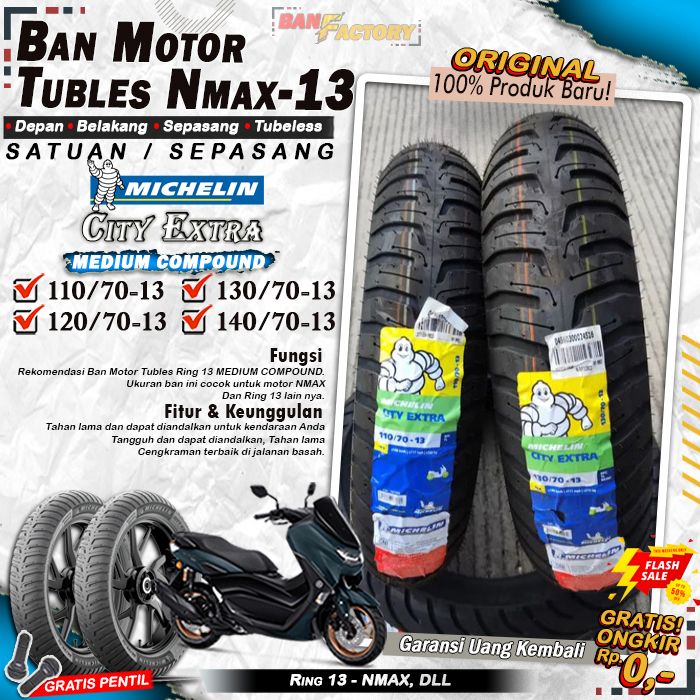 Ban Motor Matic Tubeless Michelin City Extra Ring 13 Ban Motor Nmax PCX Tubles Depan Belakang Sepasang Ring 13