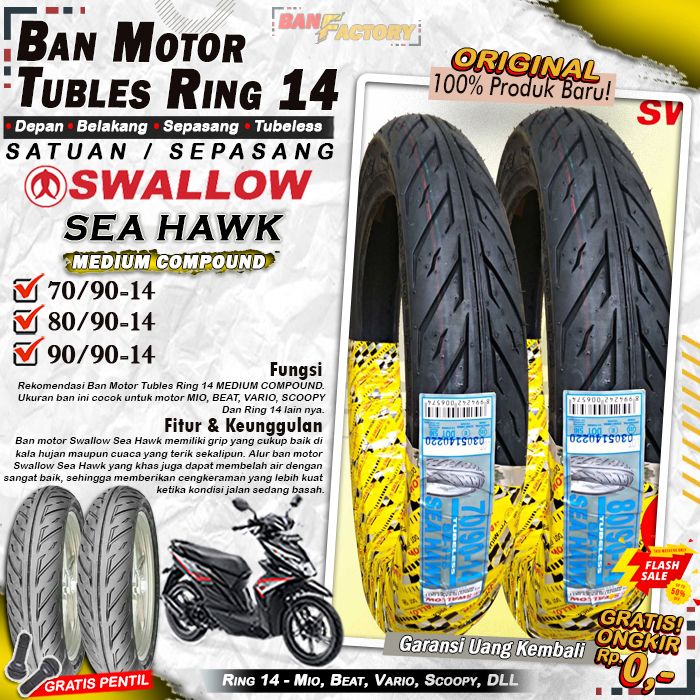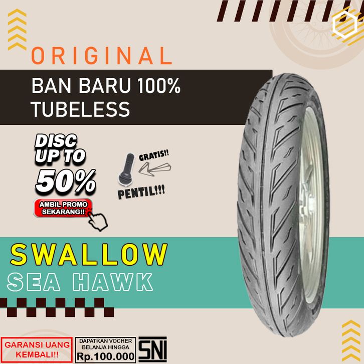 Ban Motor Matic Tubeless Swallow Sea Hawk Ring 14 Ban Motor Beat Vario Scoopy Tubles Depan Belakang Sepasang Ring 14