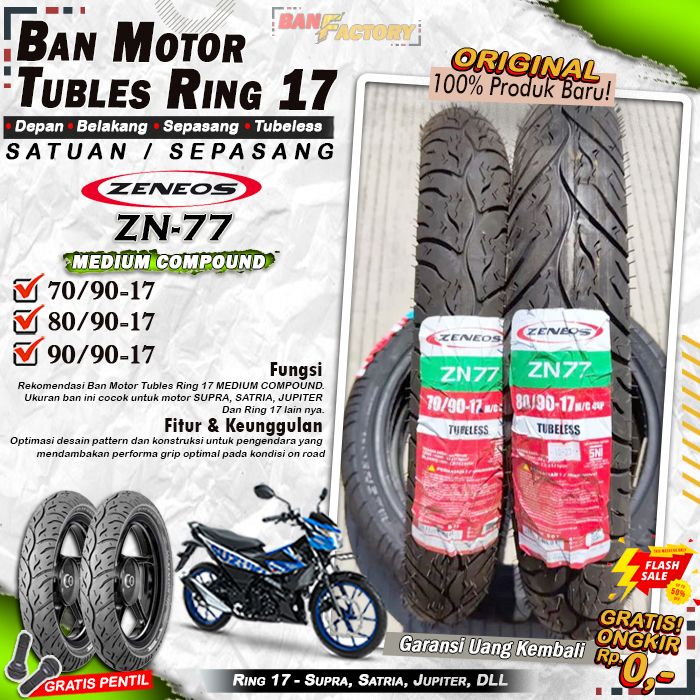 Ban Motor Tubeless Zeneos Zn77 Ring 17 Ban Motor Vixion Ninja R15 Satria Tubles Depan Belakang Sepasang Ring 17