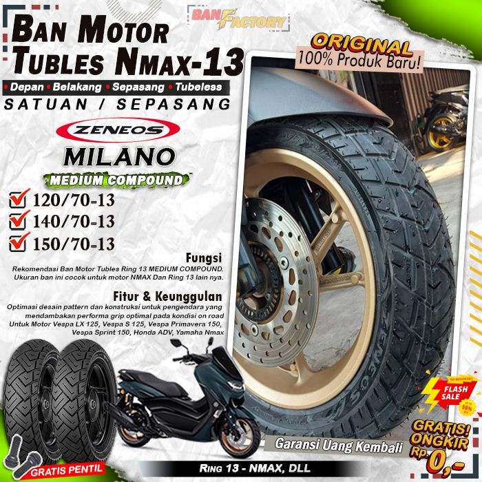 Ban Motor Matic Tubeless Zeneos Milano Ring 13 Ban Motor Nmax Tubles Depan Belakang Sepasang Ring 13