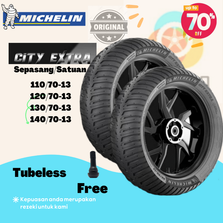Sepasang/Satuan Ban Nmax Michelin City Extra Ring 13 110/70,120/70,130/70,140/70 Motor Nmax New/Old Depan/Belakang