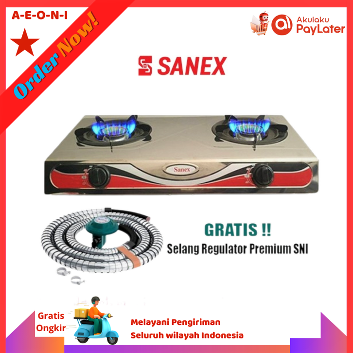 Kompor Gas Sanex 2 TUNGKU Stainless Steel Api Biru Bonus Selang Gas Caisar 1.8 Meter ber SNI