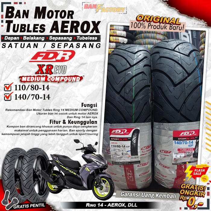 Sepasang Ban Motor Tubles AEROX FDR XR EVO Ring 14 Ban Motor Tubeless Depan Belakang AEROX Ring 14