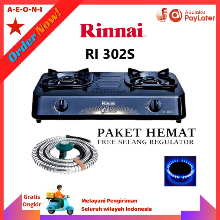 gratis ongkir-Kompor Gas 2 tungku Rinnai 302S GRATIS Selang Regulator SNI Premium Paling Bagus Murah Promo