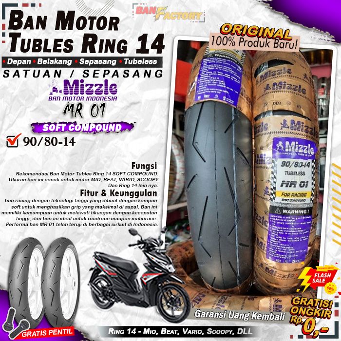Sepasang Ban Motor Tubles Beat MIZZLE MR-01 Ring 14 Ban Motor Tubeless Depan Belakang Beat Vario Scoopy Ring 14