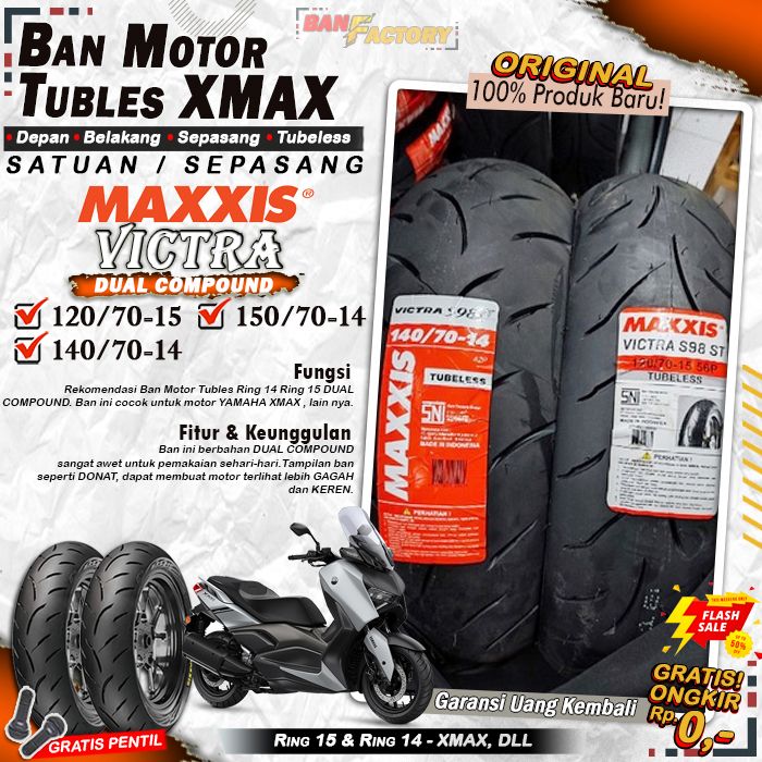 Sepasang Ban Motor Tubles XMAX MAXXIS VICTRA Ring 15 Ring 14 Ban Motor Tubeless Depan Belakang XMAX