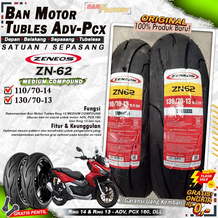 Sepasang Ban Motor Tubles ADV PCX 160 ZENEOS ZN62 Ring 14 Ring 13 Ban Motor Depan Belakang ADV PCX Ring 14