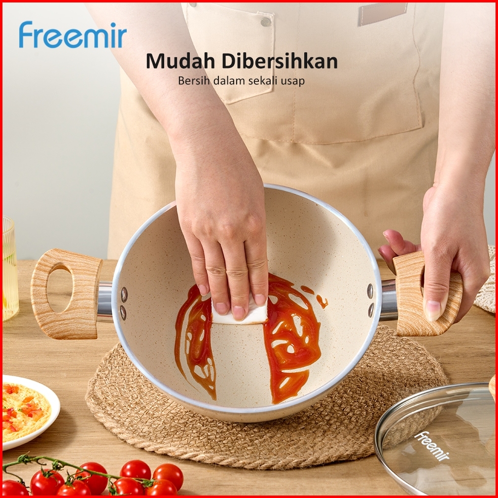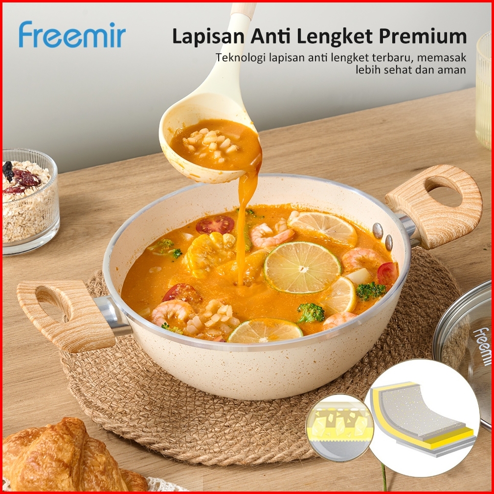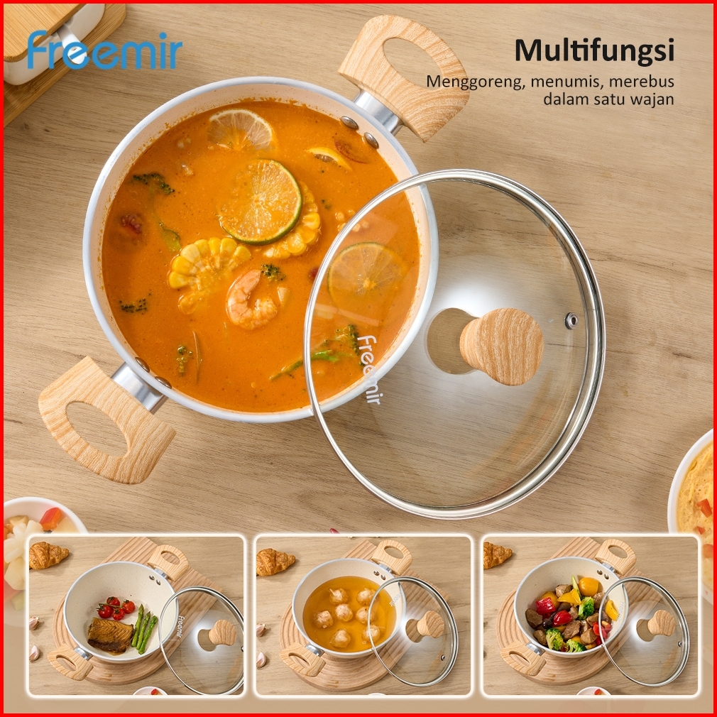 Freemir Wajan Kuping Anti Lengket 20cm Tinggi 7.5cm Dengan Tutup Kaca Serbaguna Single Bottom