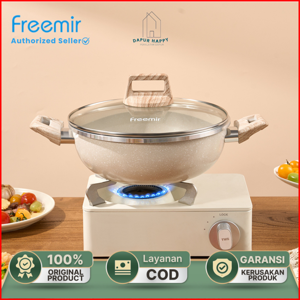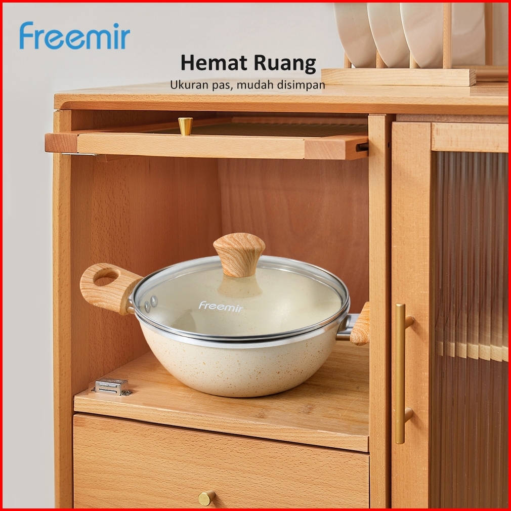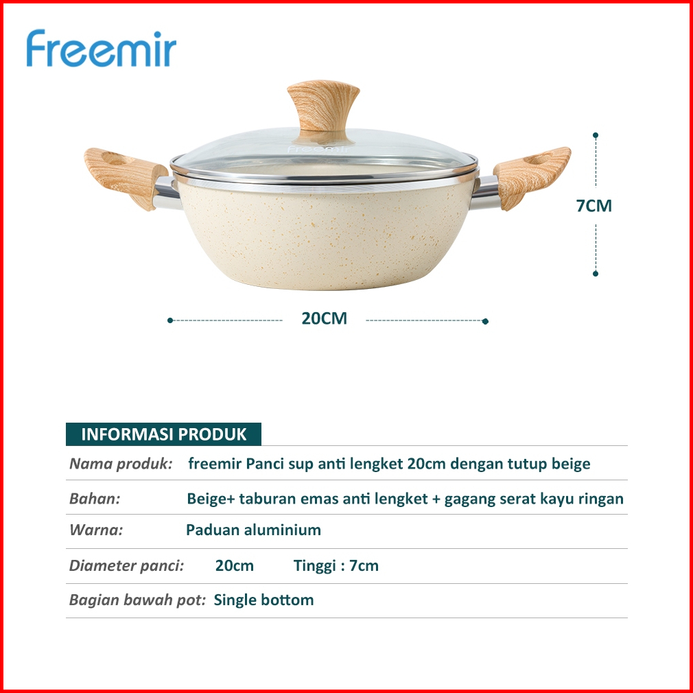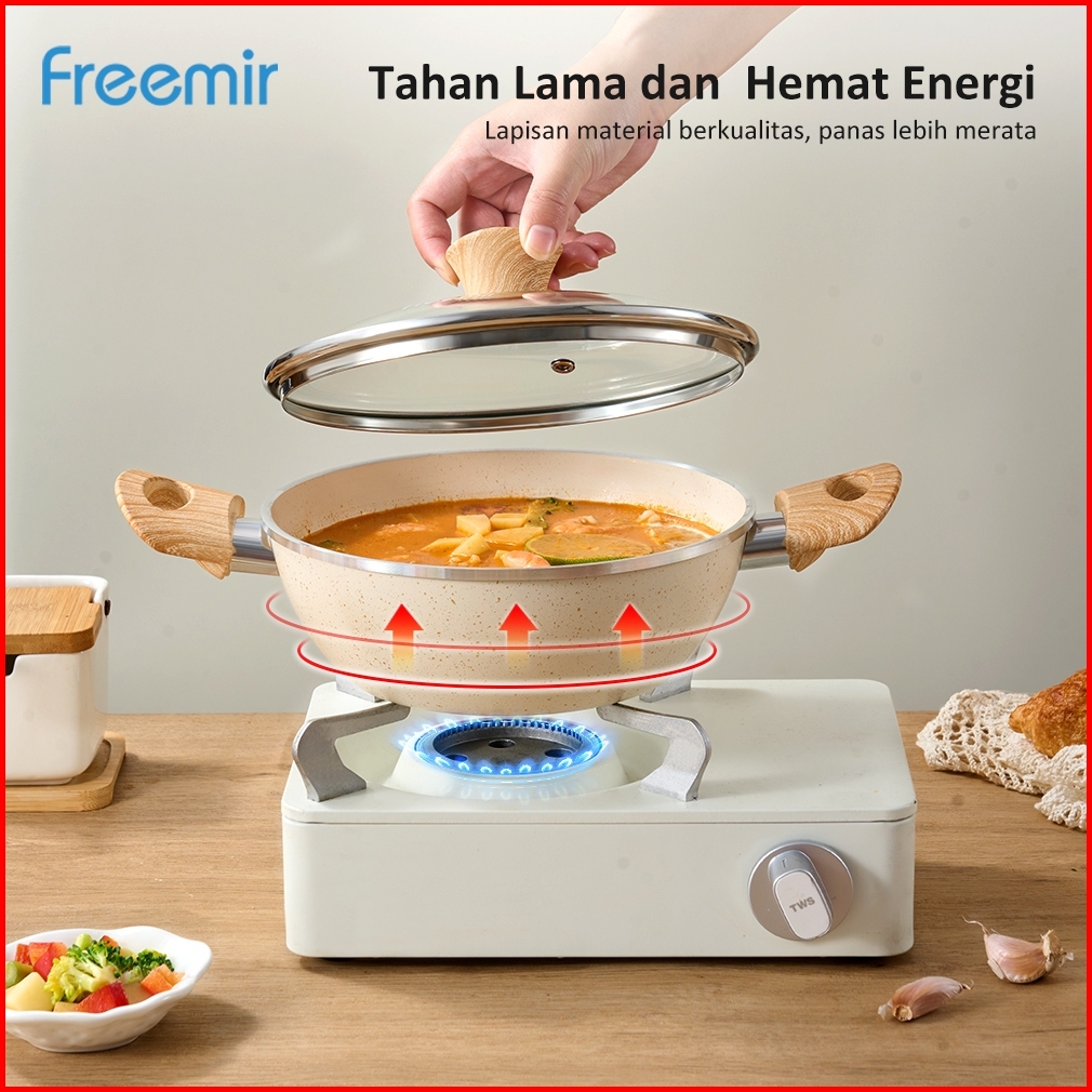 Freemir Wajan Kuping Anti Lengket 20cm Tinggi 7.5cm Dengan Tutup Kaca Serbaguna Single Bottom