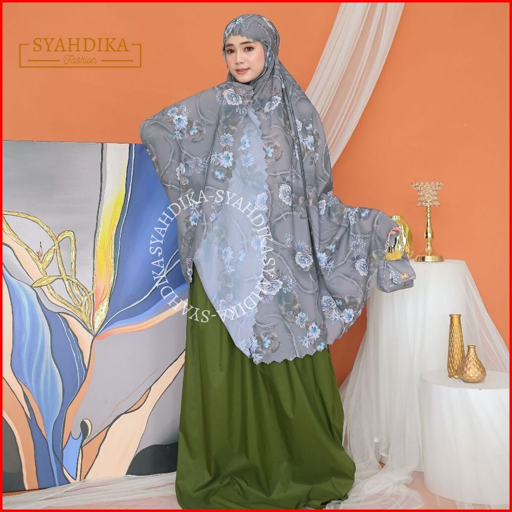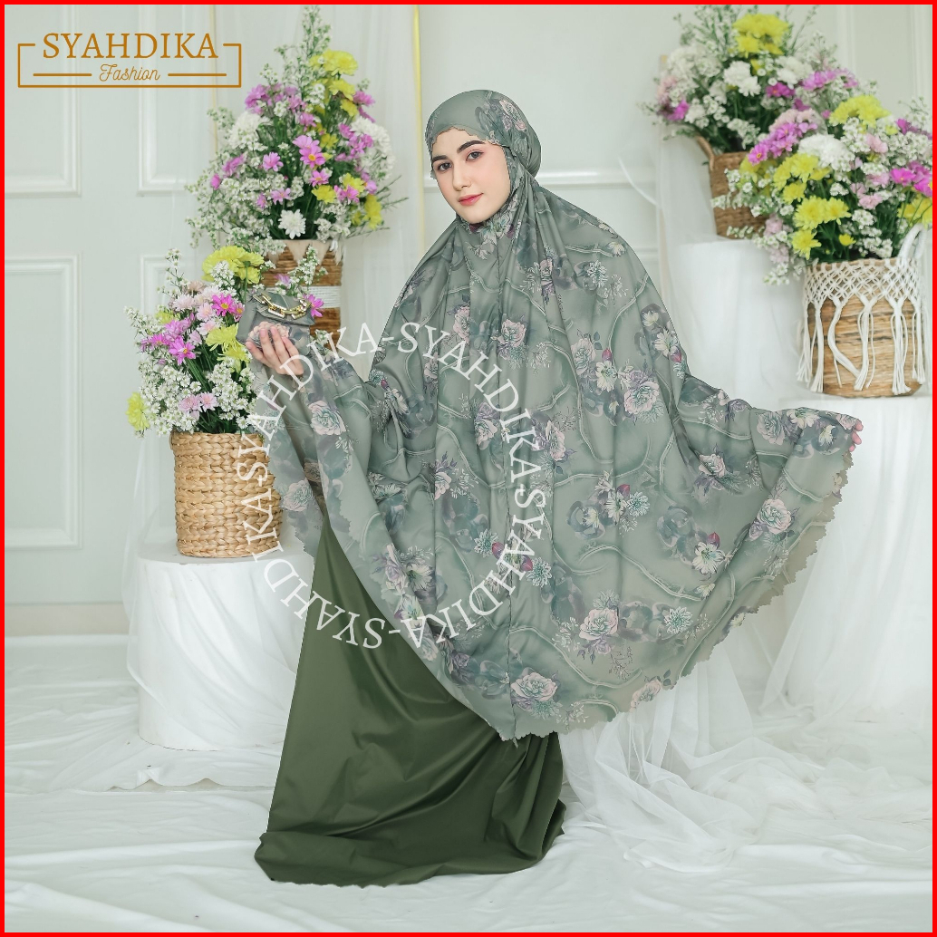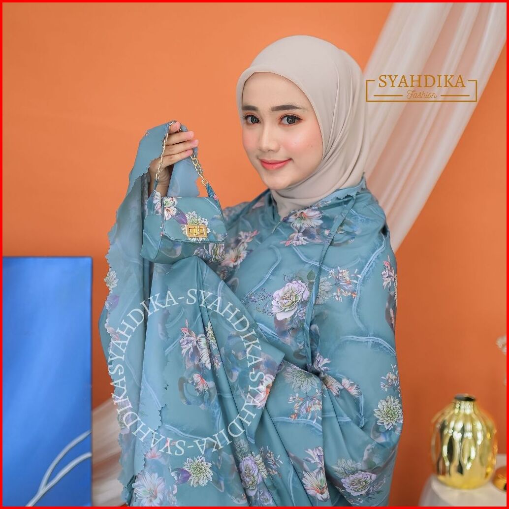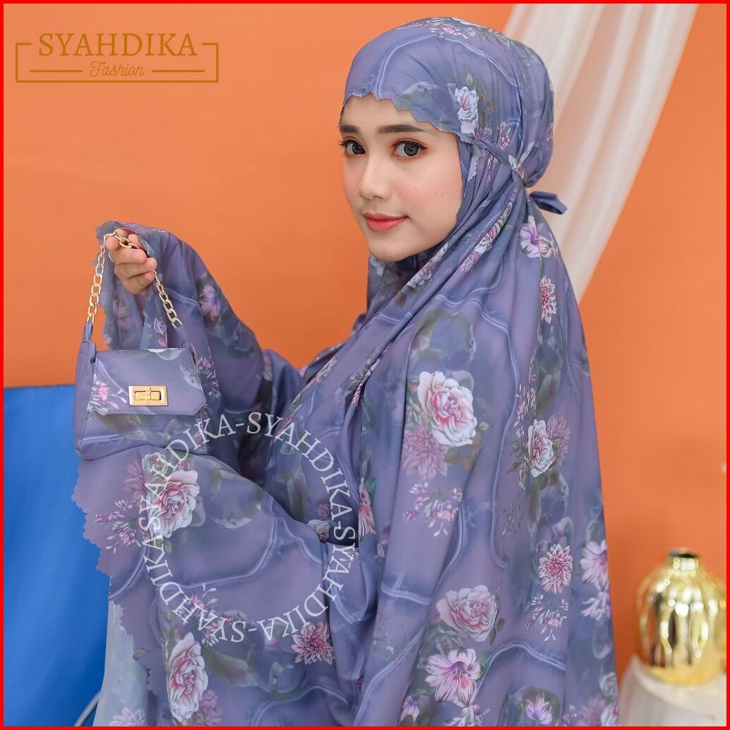 Syahdika - Mukena Travel Mini Parasut Premium Korea 2in1 Motif Peony Laser Cut
