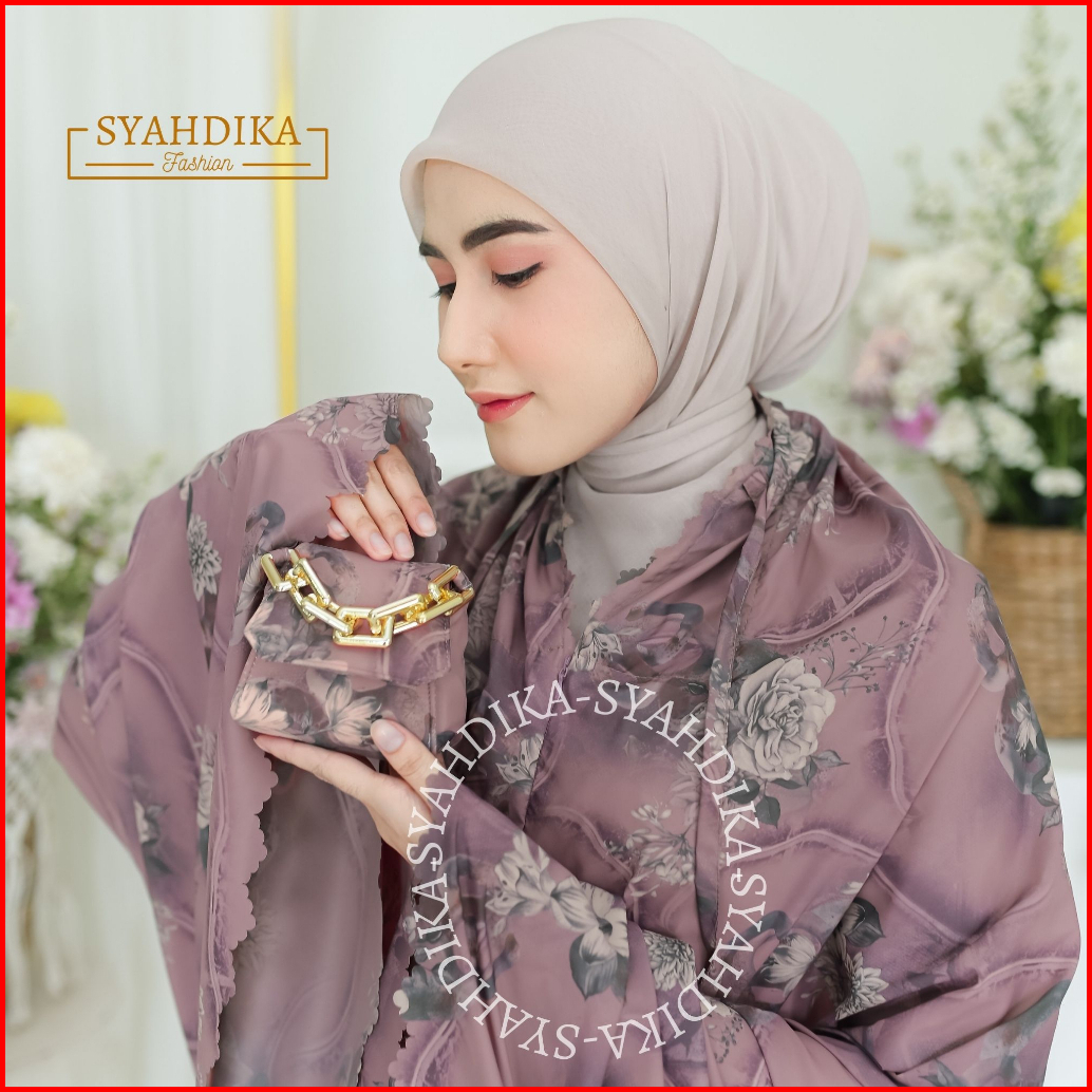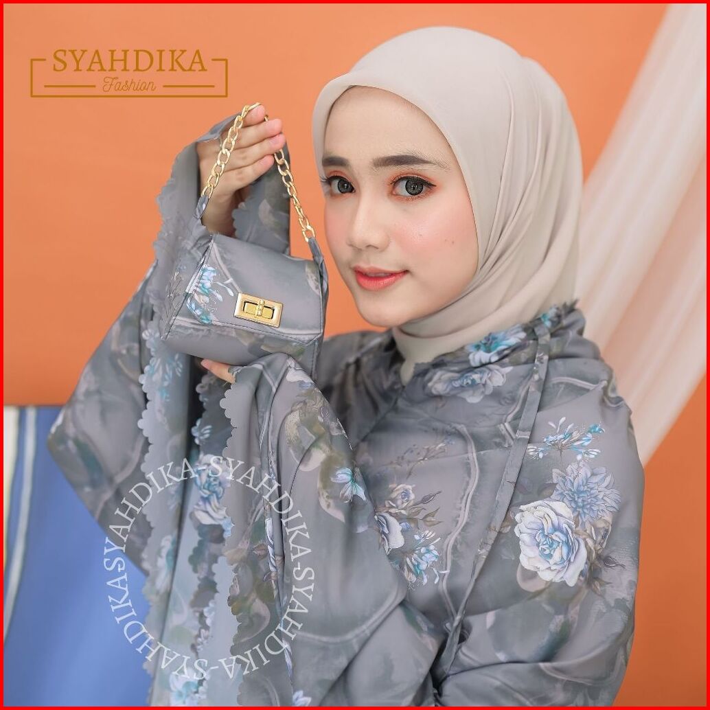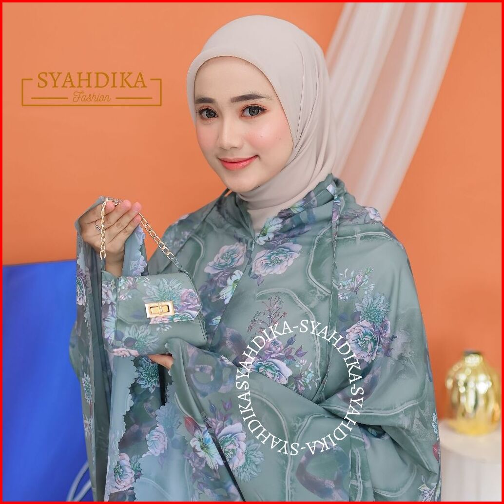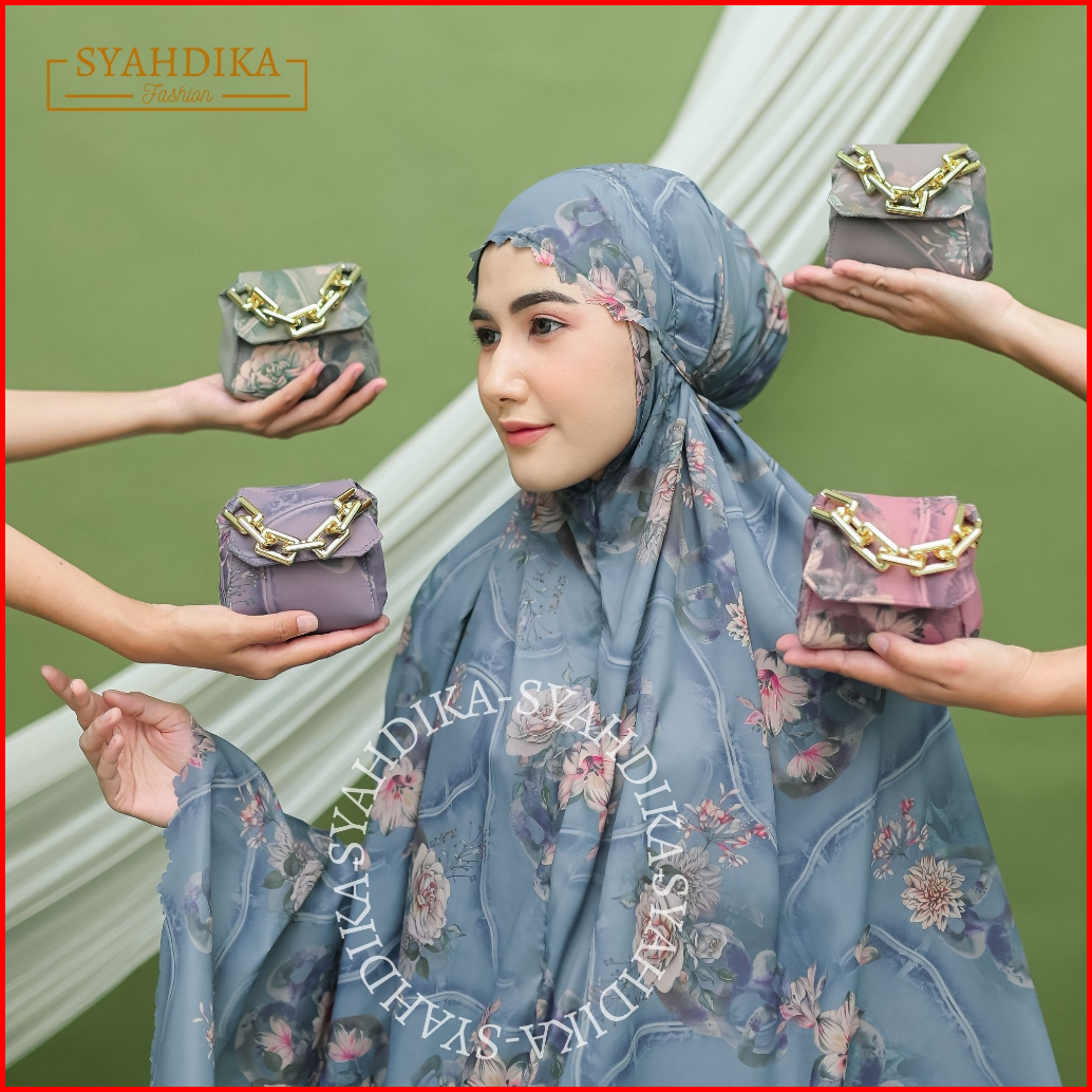 Syahdika - Mukena Travel Mini Parasut Premium Korea 2in1 Motif Peony Laser Cut
