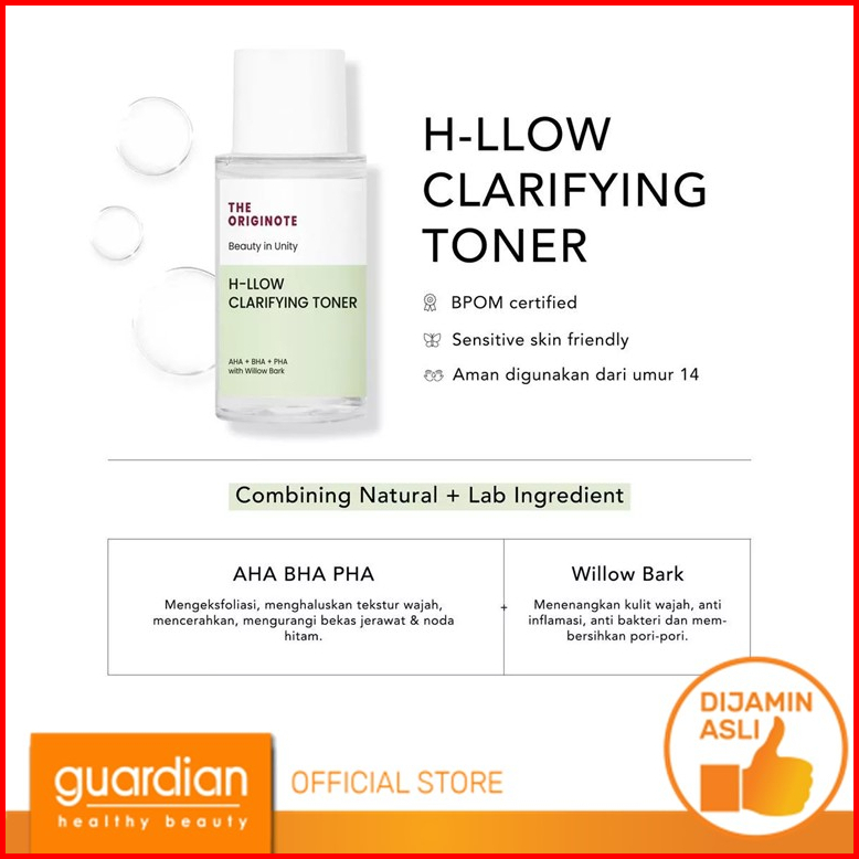 The Originote H-llow Clarifying Toner Aha Bha Pha With Willow Bark Untuk Eksfoliasi Dan Melembabkan Wajah 80ml
