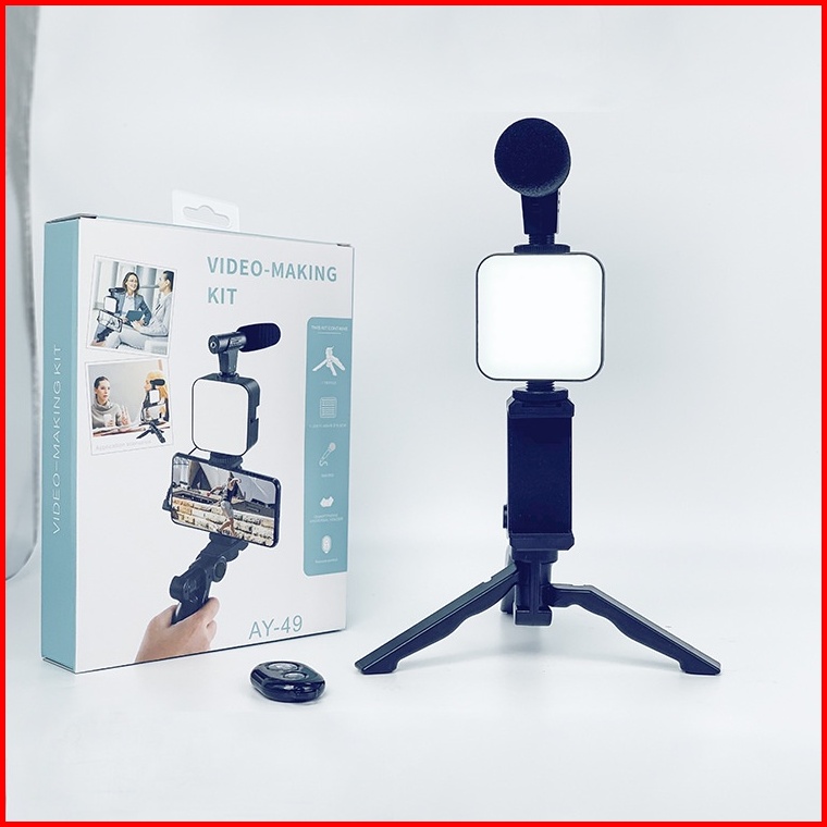 Paket Video Making Kit Ay-49 With Mikrofon Lampu Led Vlogging Kit Tripod Vlog Video Bonus Remote Tomsis Bluetooth Wirele