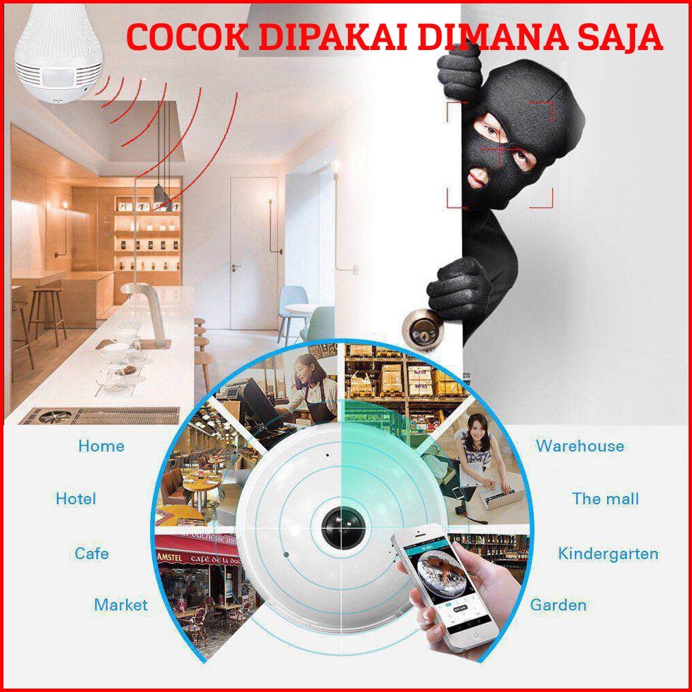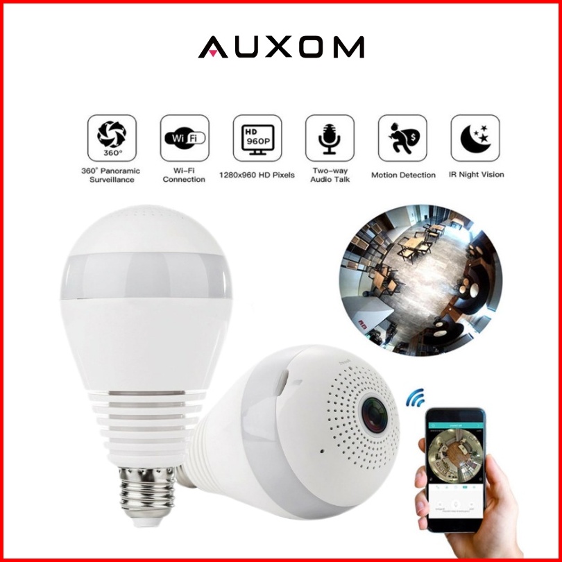 Auxom Cctv Lampu Bohlam Ip Kamera Wireless Wifi 2mp Hd 1080p Smart Indoor Light Bulb Camera 360 Panorama Fisheye V380 Pr