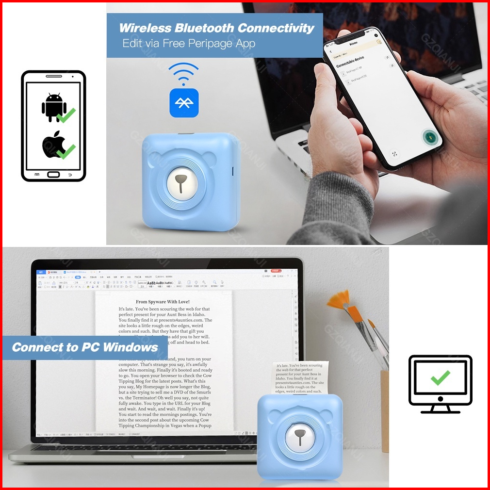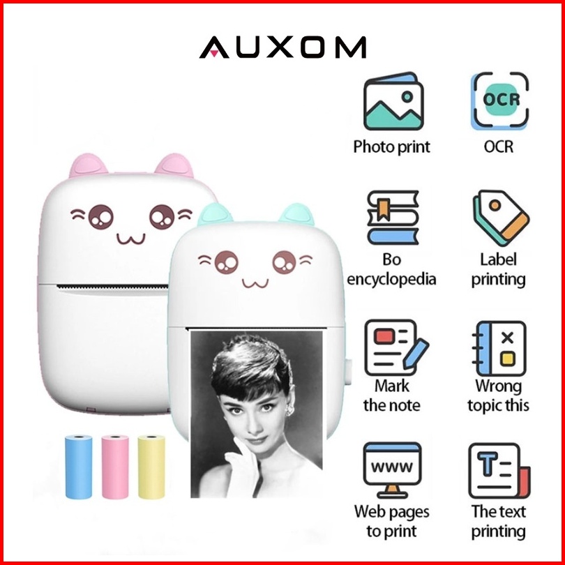 Auxom Mini Printer Mini Thermal Bluetooth Pocket Wireless Wifi Bt Picture Photo Label Receipt Paper Memo
