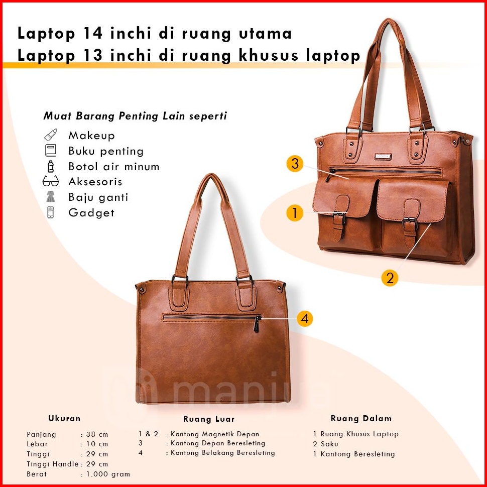 Tas Kerja Klasik Victoria Bag By Manjua. Muat Laptop 14 Inch. Tas Kerja Wanita. Muat Banyak Barang. Melindungi Laptop Da